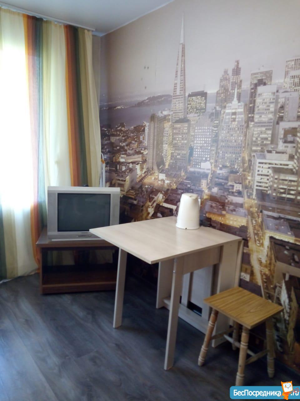 Уютная комната в общежитии! Дом после капитального ремонта. В комнате имеется горячая,холодная вода, стиральная машина, электро плита,кух гарнитур,обеденный стол, шкаф купэ, диван. Собственник! Все вопросы по телефону.
