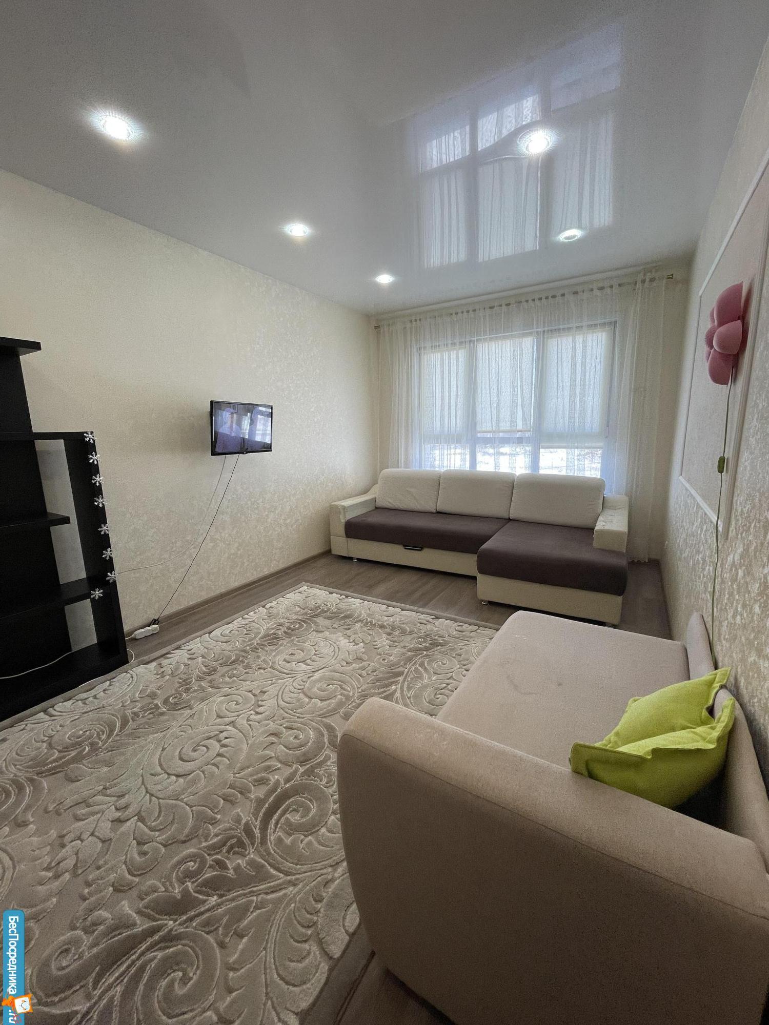 Сдается евродвушка 46м2 (большая комната 18м2 + кухня-гостиная 15м2), пр. Северный Власихинский 108, 1/10эт.
