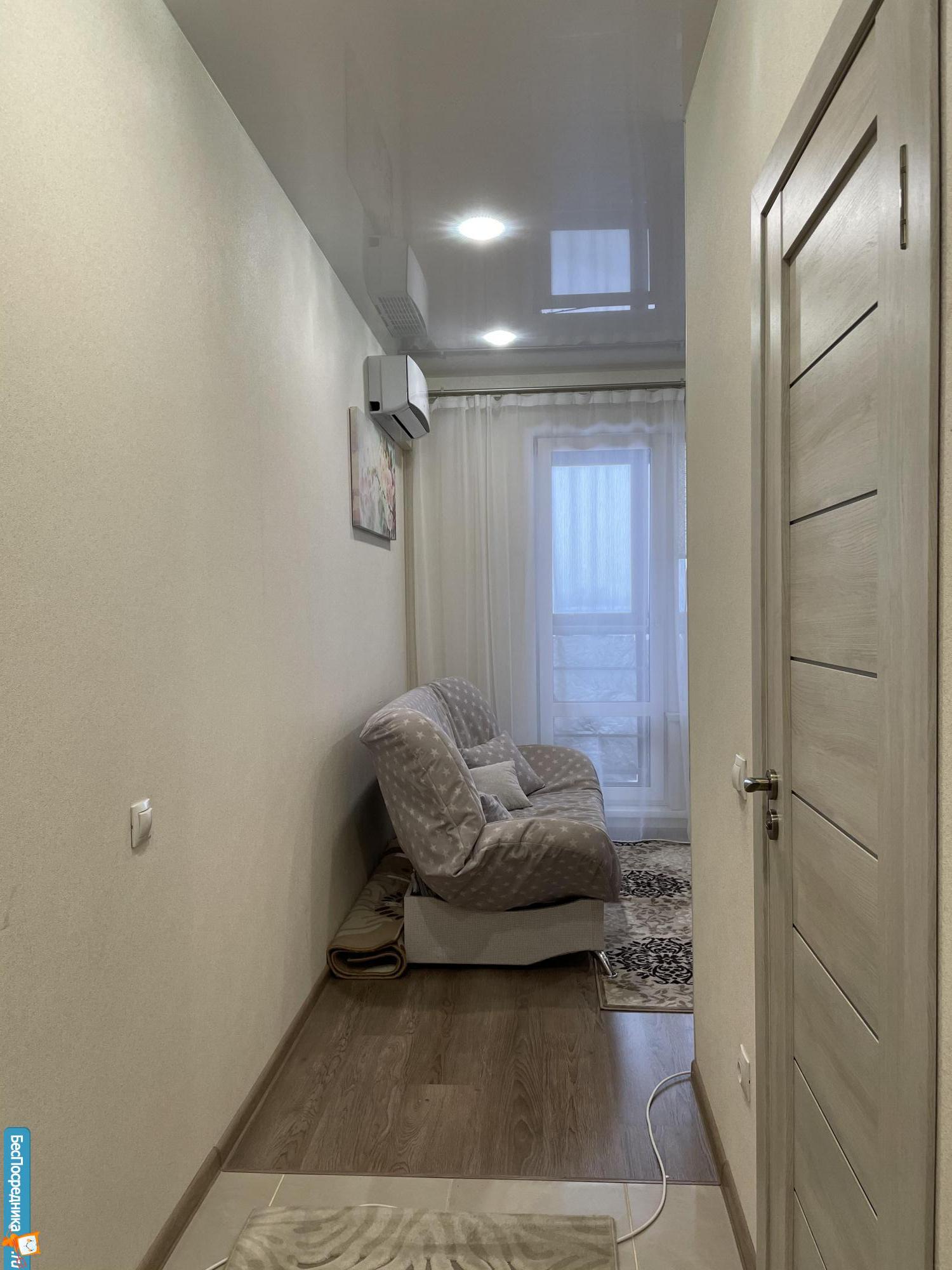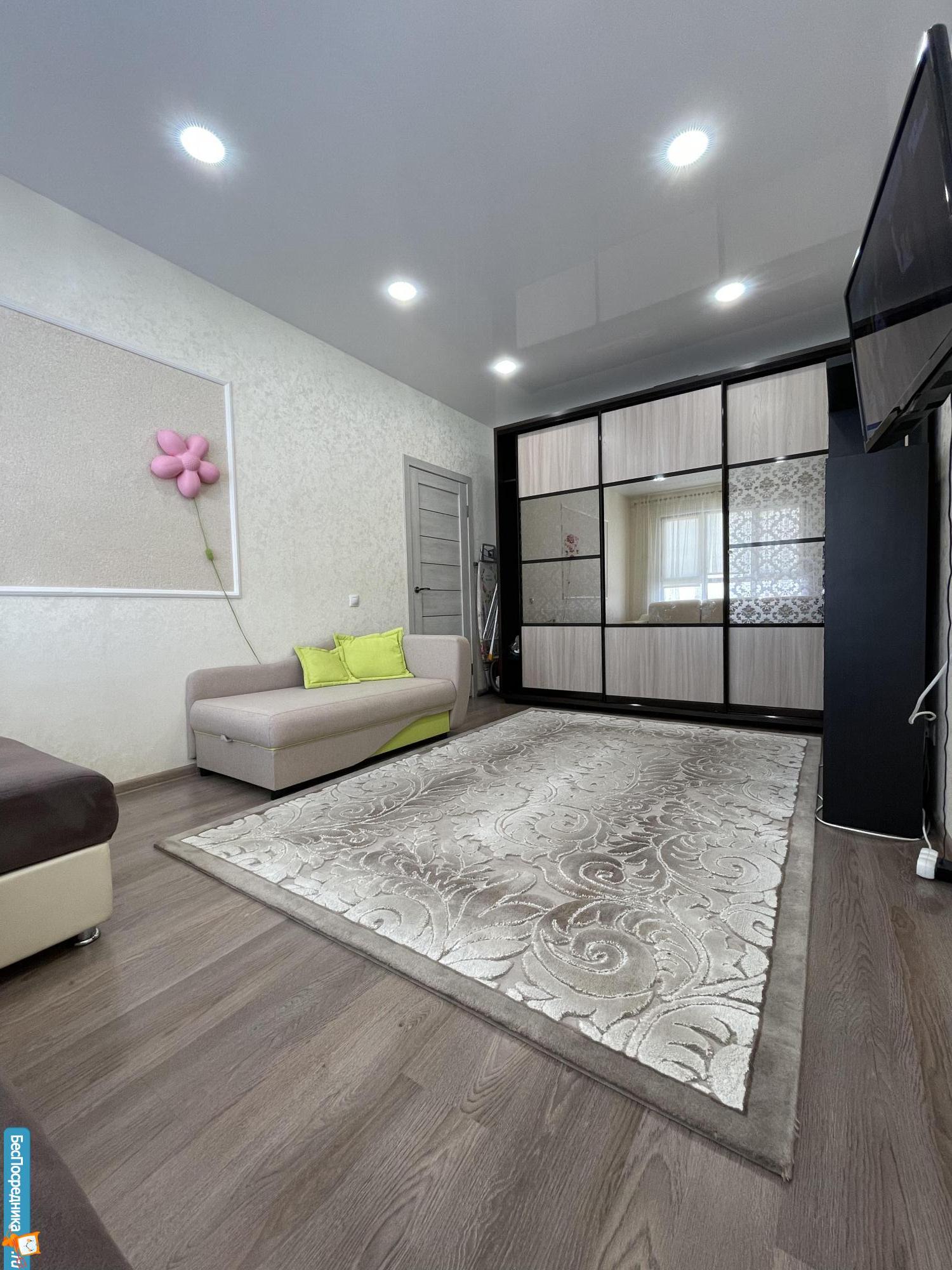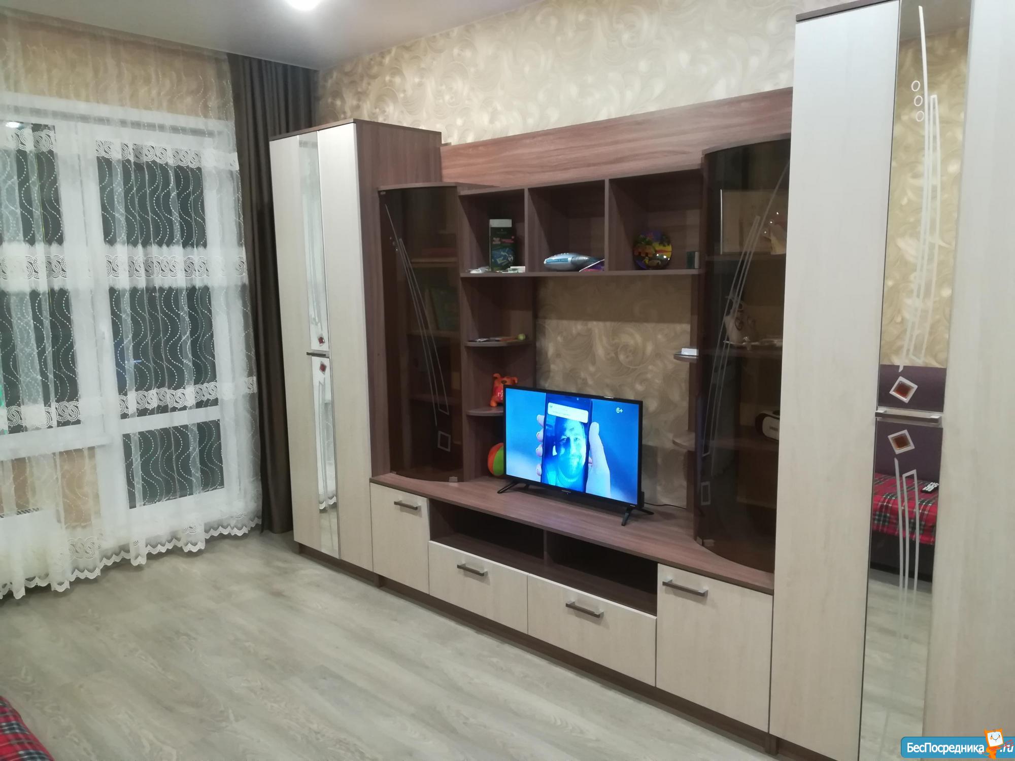 Квартира с хорошим ремонтом, светлая, просторная, с отличной планировкой. В прихожей большой шкаф-купе, в комнате шкаф-купе, выход на балкон, в кухне-гостинной кухонный гарнитур. Бытовой техники и спальных мест нет.