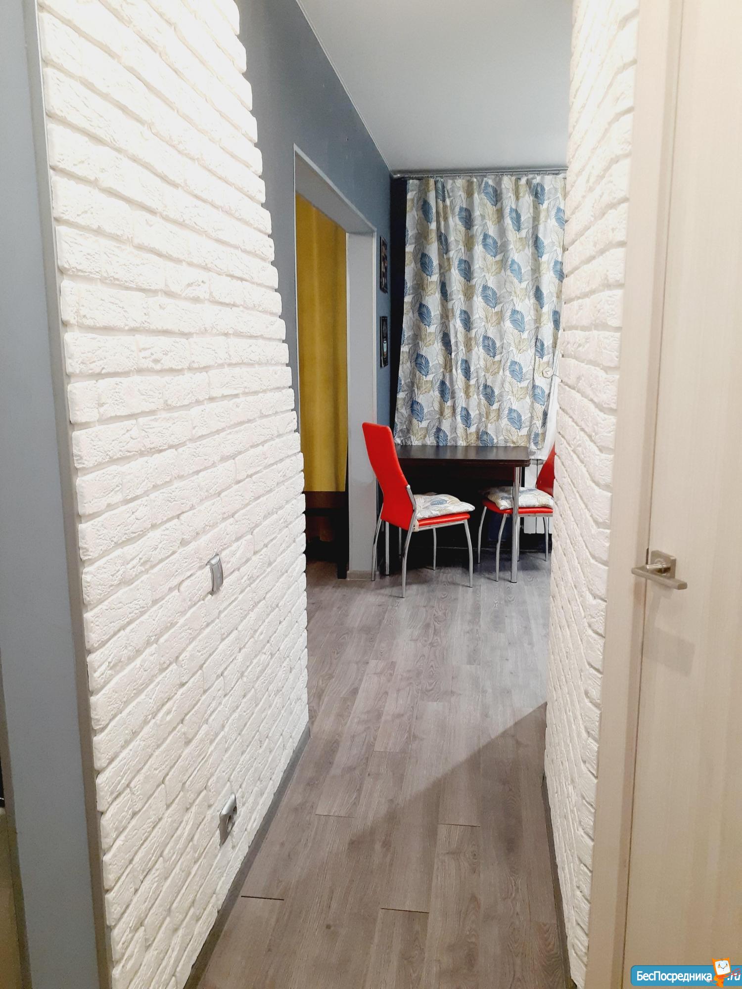 Произведён свежий дизайнерский ремонт - стены - фактурная штукатурка , плитка под кирпич, ламинат, кафель в рабочей зоне кухни, новая сан.техника, кафель в ванной комнате.