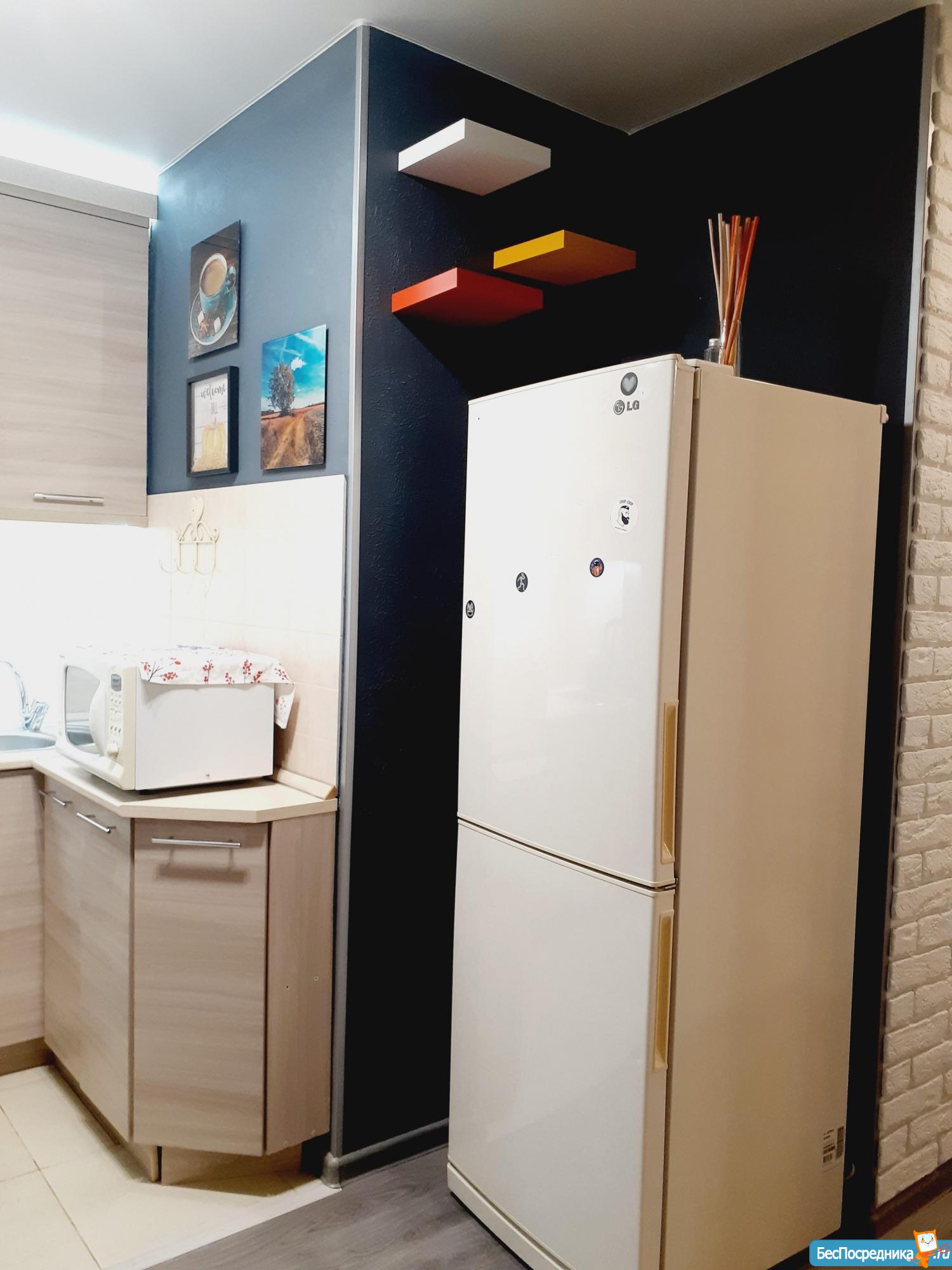 В квартире имеется всё необходимое : Мебель : Два встроенных шкафа, Диван, кровать, душевая стойка. Новая стиральная машина, кухонный гарнитур, вместительный холодильник LG,