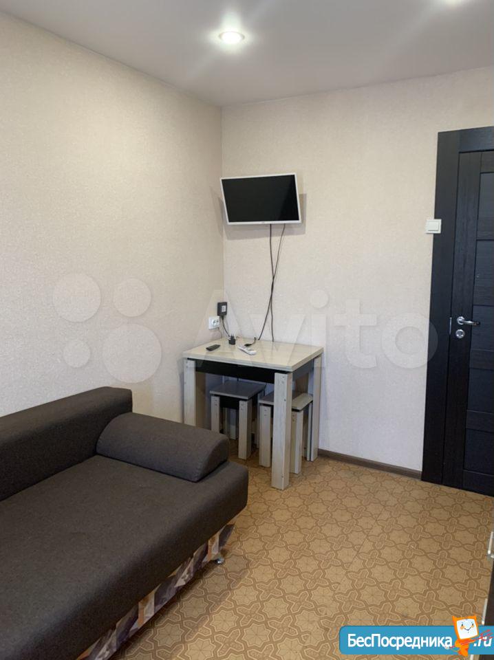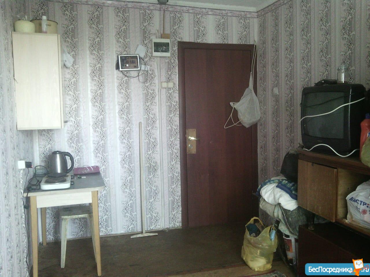 Комната с ремонтом,обои под покраска ламинат,пл.окно,в комнате кровать,стенка телевизор,холодильник,плитка ,чайник,соседи хорошие рядом магазины ,почта,школа
