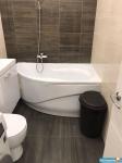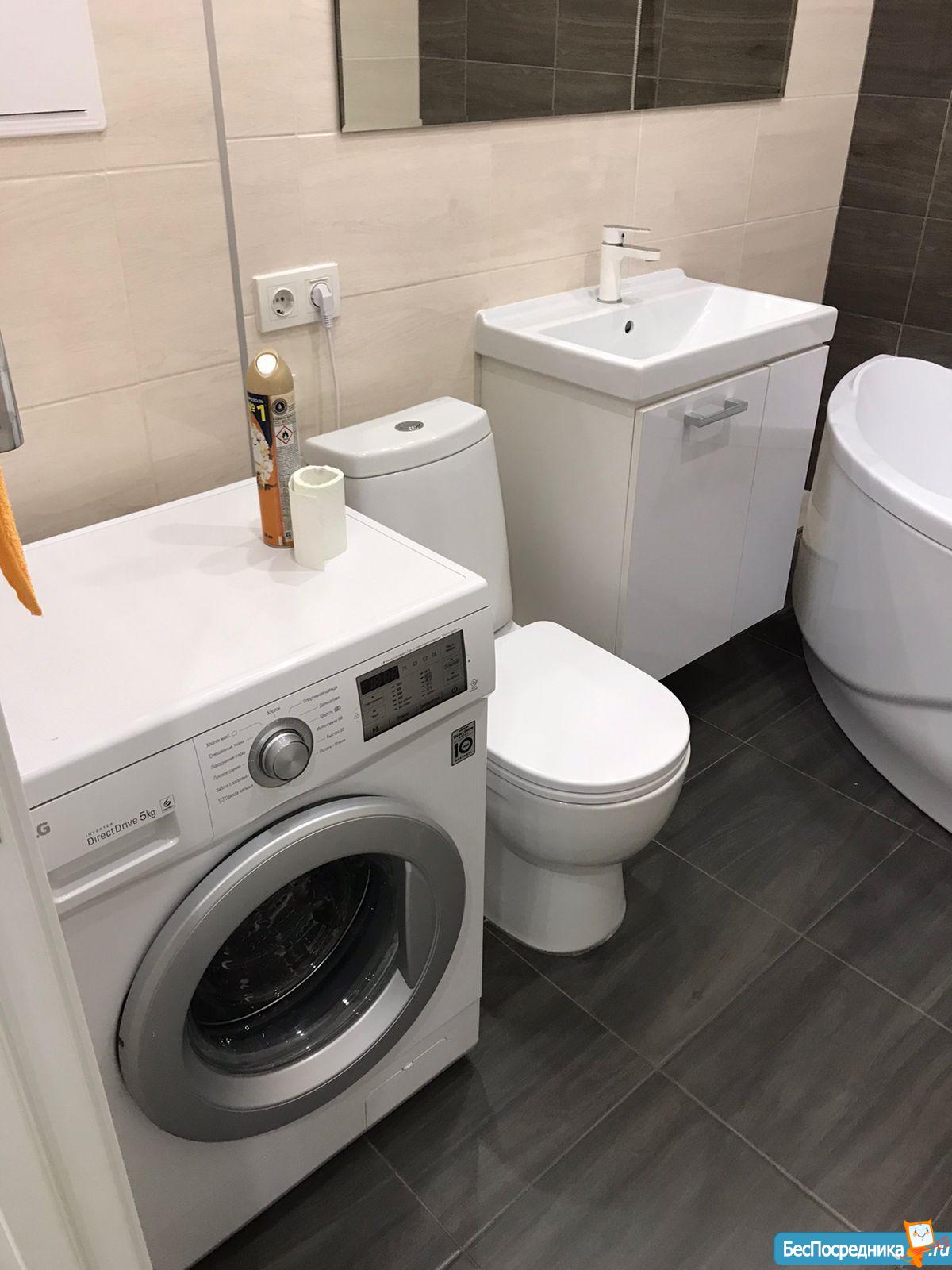 В санузле установлена стиральная машина автомат, чугунная ванна, раковина.