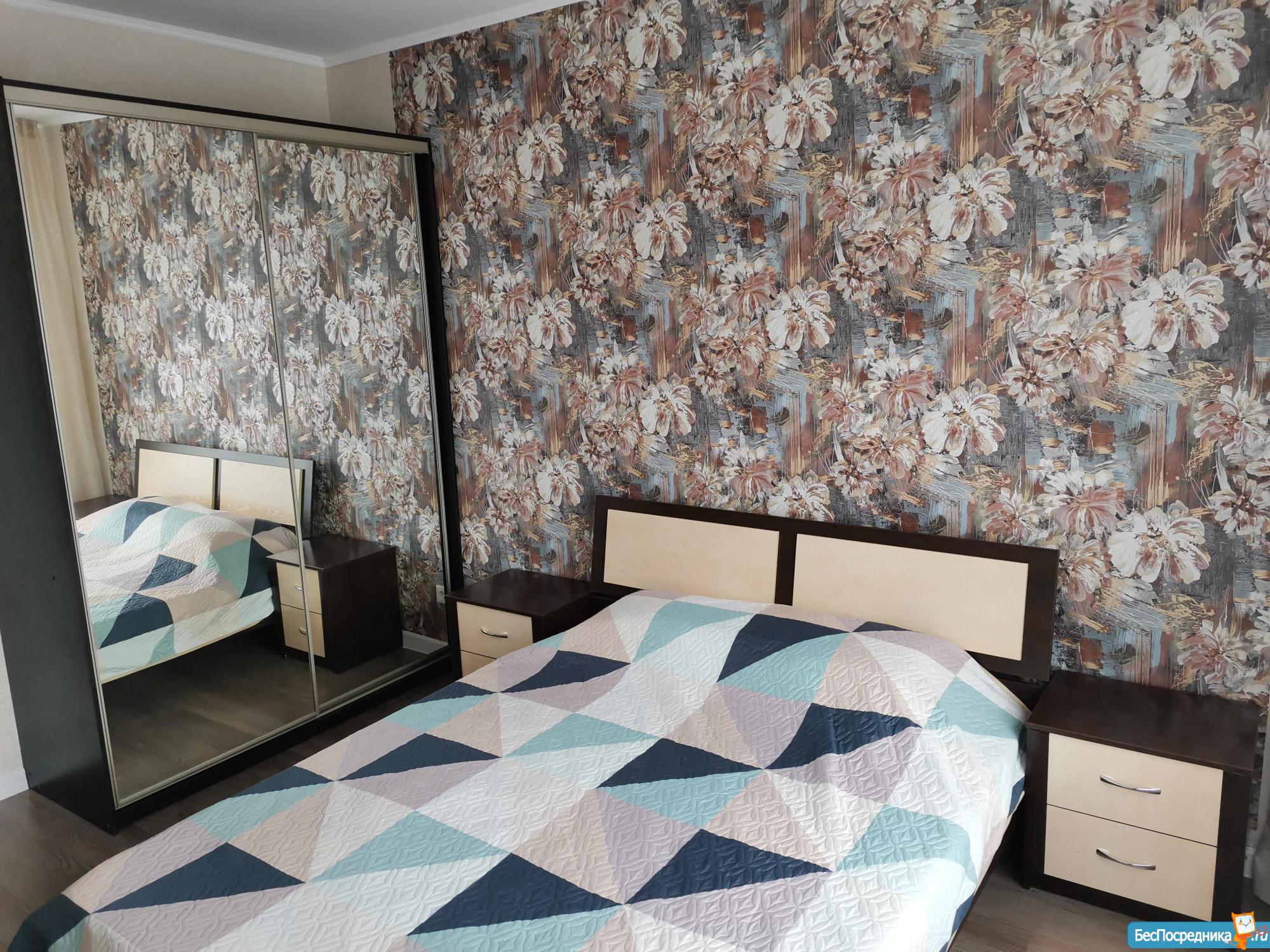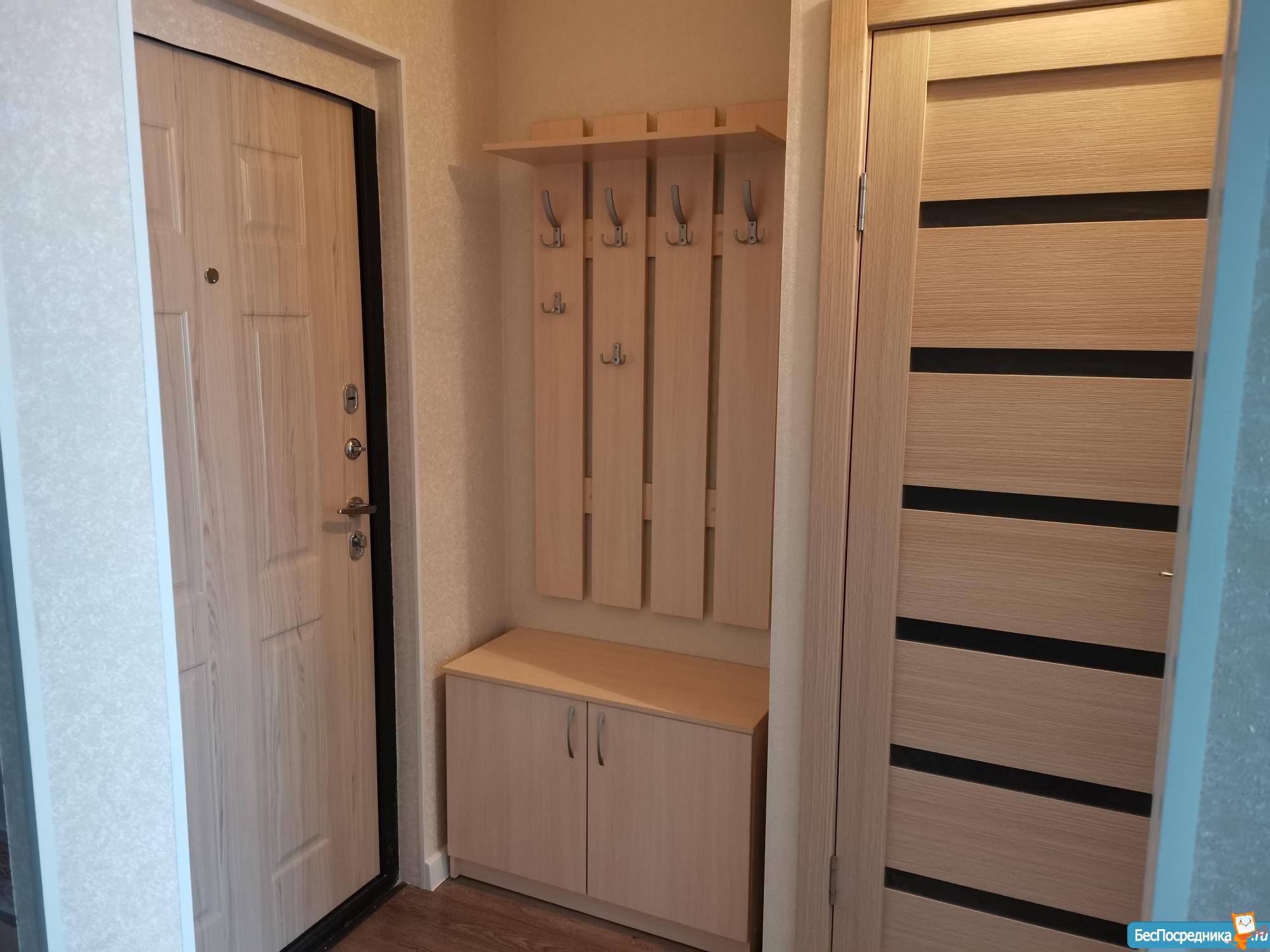 Вся обстановка на фотографиях. В квартире: диван, телевизор, двухместная кровать, шкаф для одежды, 2 тумбочки, прихожая.