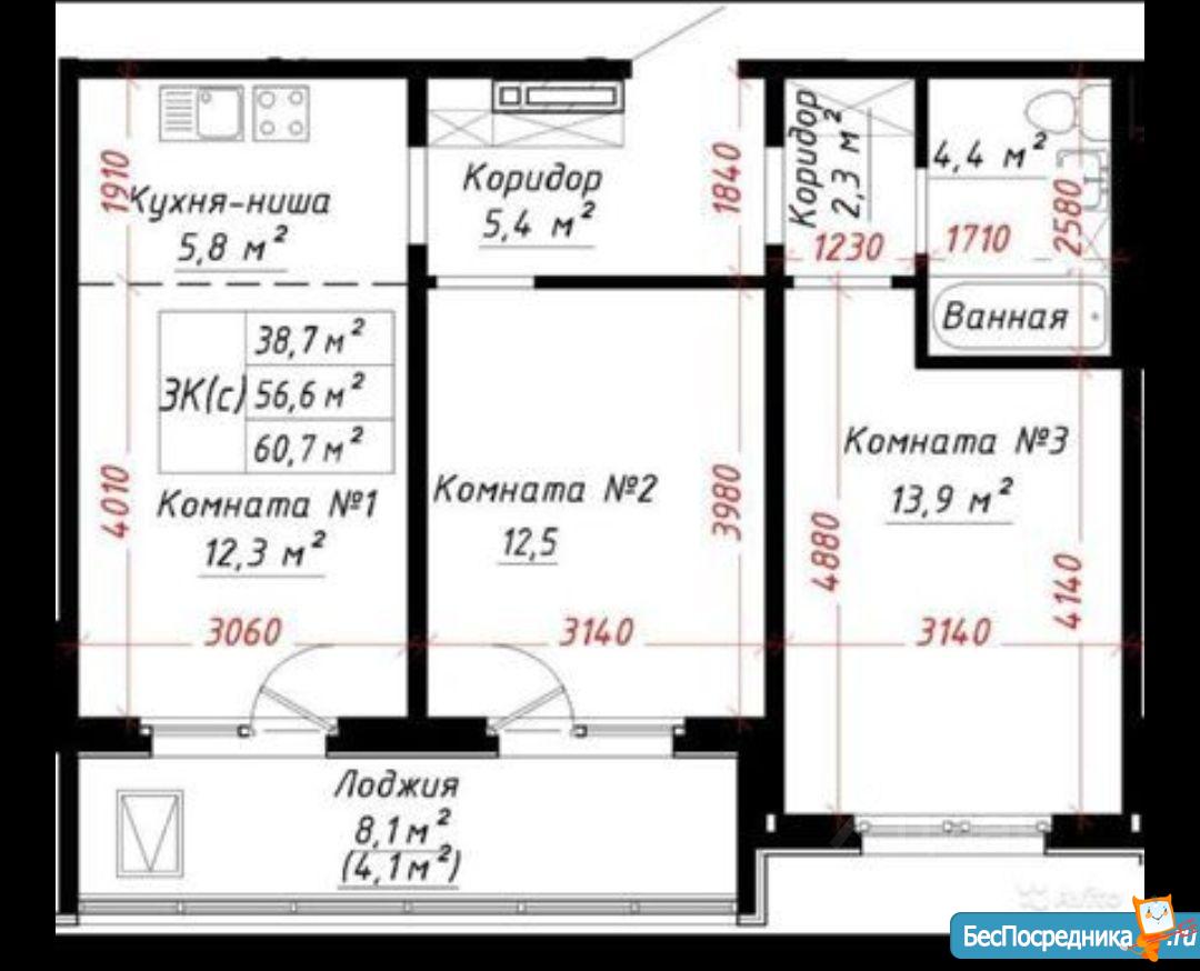 Квартира в новом доме кухня и зал лоджия большая ул 65 лет Победы 10