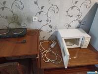 Есть всё необходимое для проживания: техника (микроволновка,чайник, холодильник, большая морозильная камера, телевизоры, водонагреватель, вентилятор и т д), мебель.