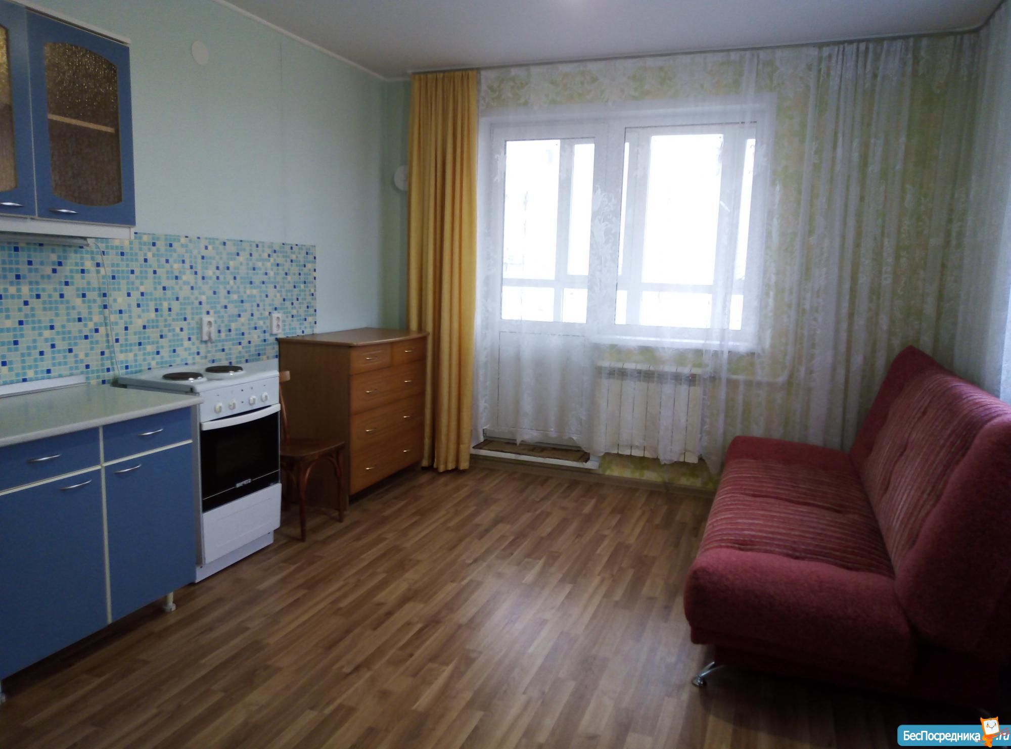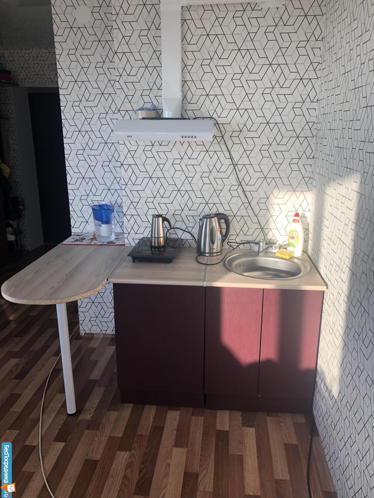 Кухня студия в новом доме с мебелью и бытовой техникой (холодильник, эл/плита, микроволновка, телевизор, чайник, стиральная машина автомат) на длительный срок. 10 тыс.руб плюс квитанция.