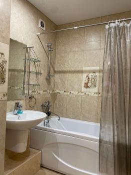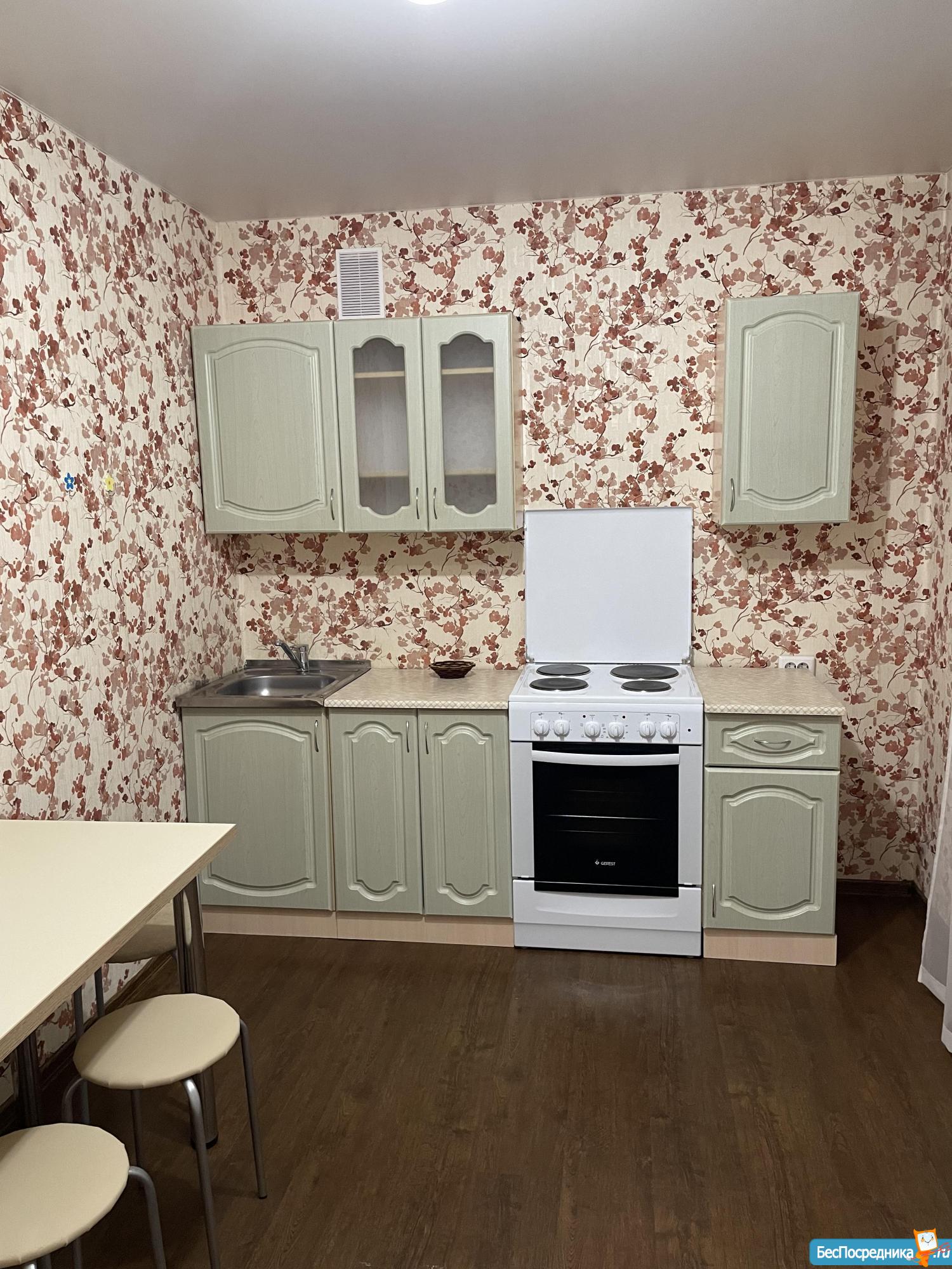 Новый дом. Натяжные потолки, большая ванна, ламинат, кафель, электроплита (стеклокерамика), новый холодильник, мягкая мебель (2 дивана), комод, шкаф, стиральная машина, компьютерный столик, кухонный стол, стулья. Камеры видео наблюдения в подъезде. Во дворе парковка, шлагбаум, детская площадка. Детский садик, Мария Ра. Вода и свет по счетчикам. Собственник, не агенство!