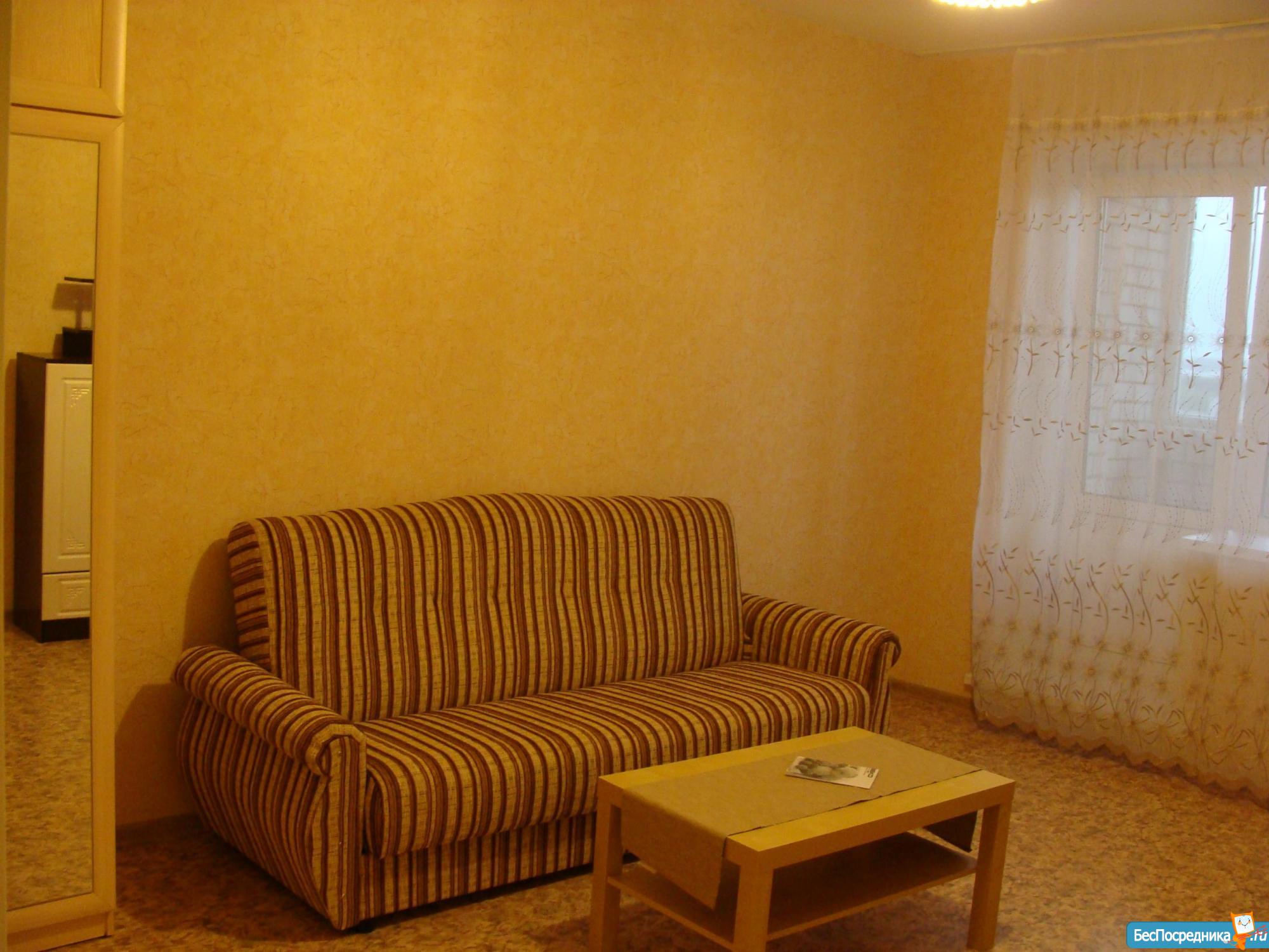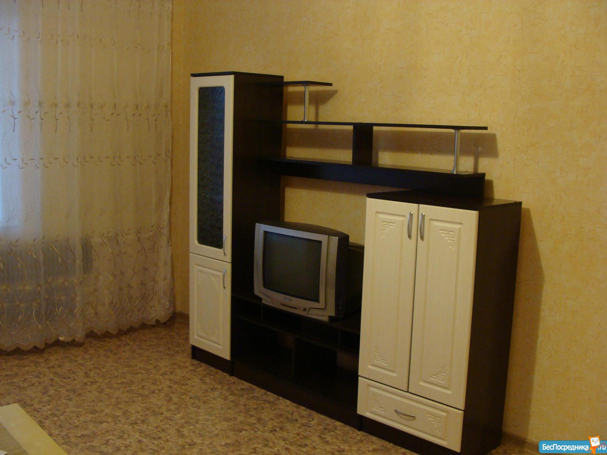 Полноценная двухкомнатная квартира в современном доме, частично мебелирована: кухонный гарнитур, стол, стулья, холодильник, шторы, три шкафа, полка под обувь, стол. Есть возможность выкупить диван кровать у предыдущих квартирантов. Ищем порядочных людей, без животных.