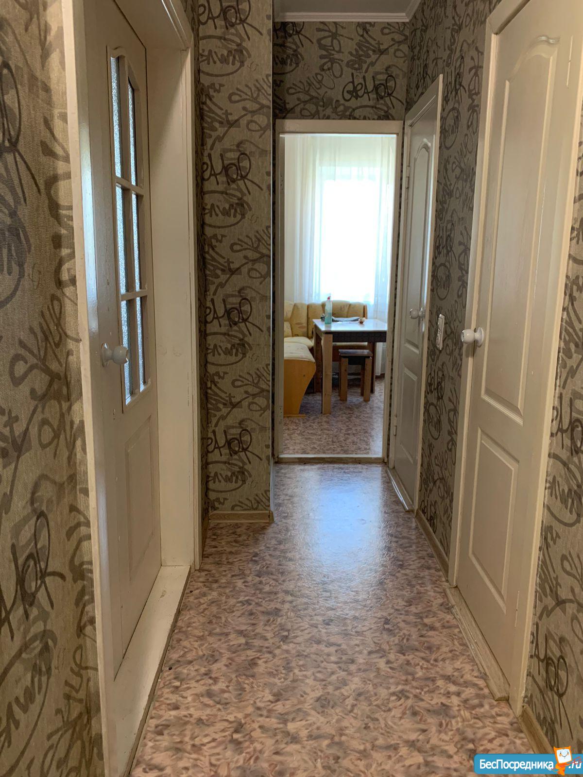 2-х комнатная квартира, полноценная: две комнаты, кухня, гардеробная, 57 квадратов , адрес: ул. 65 лет Победы, 49. Окна на обе стороны. Есть кухонный гарнитур, с отверстиями под встраиваемую технику, стол кухонный, 4 табурета.