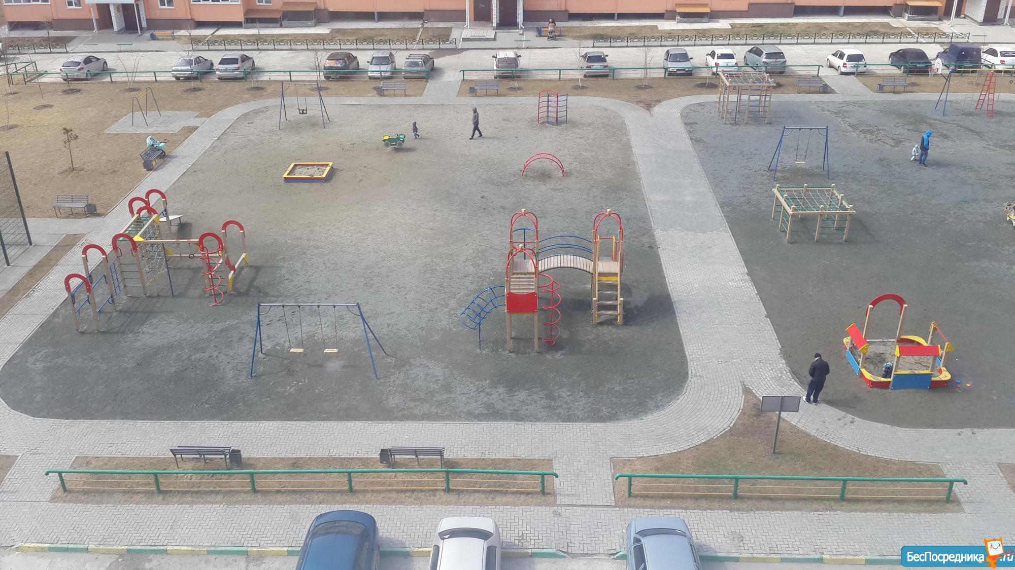 Около дома детсад, школа.