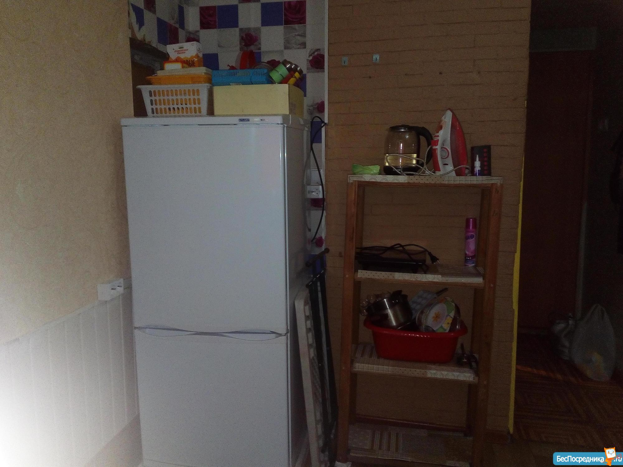 Есть холодильник , чайник.Стиральной машинки нет. Пока что временно нет плитки, утюга.