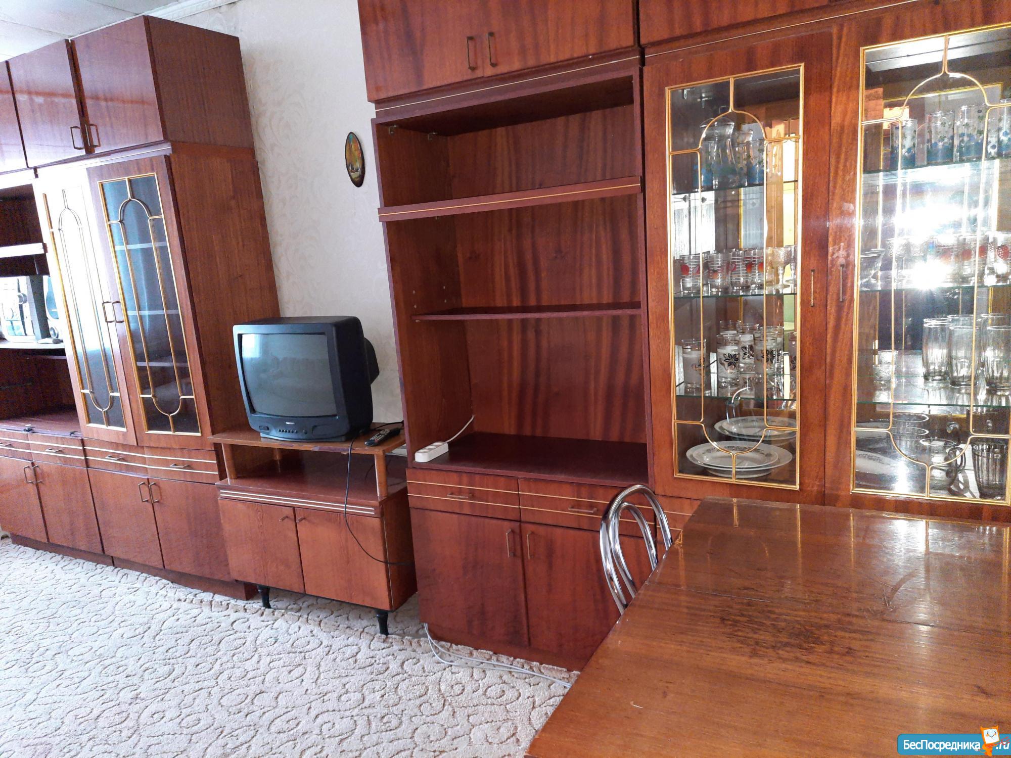Окна пластиковые,балкон, комнаты смежные,мебелированная: стенка,диван,два кресла,шкаф,кровать,холодильник, телевизор. Аренда +счётчики