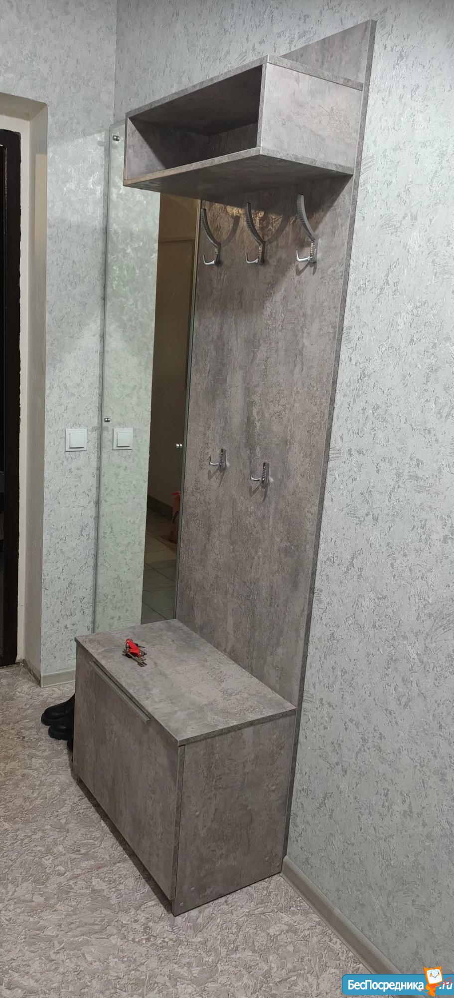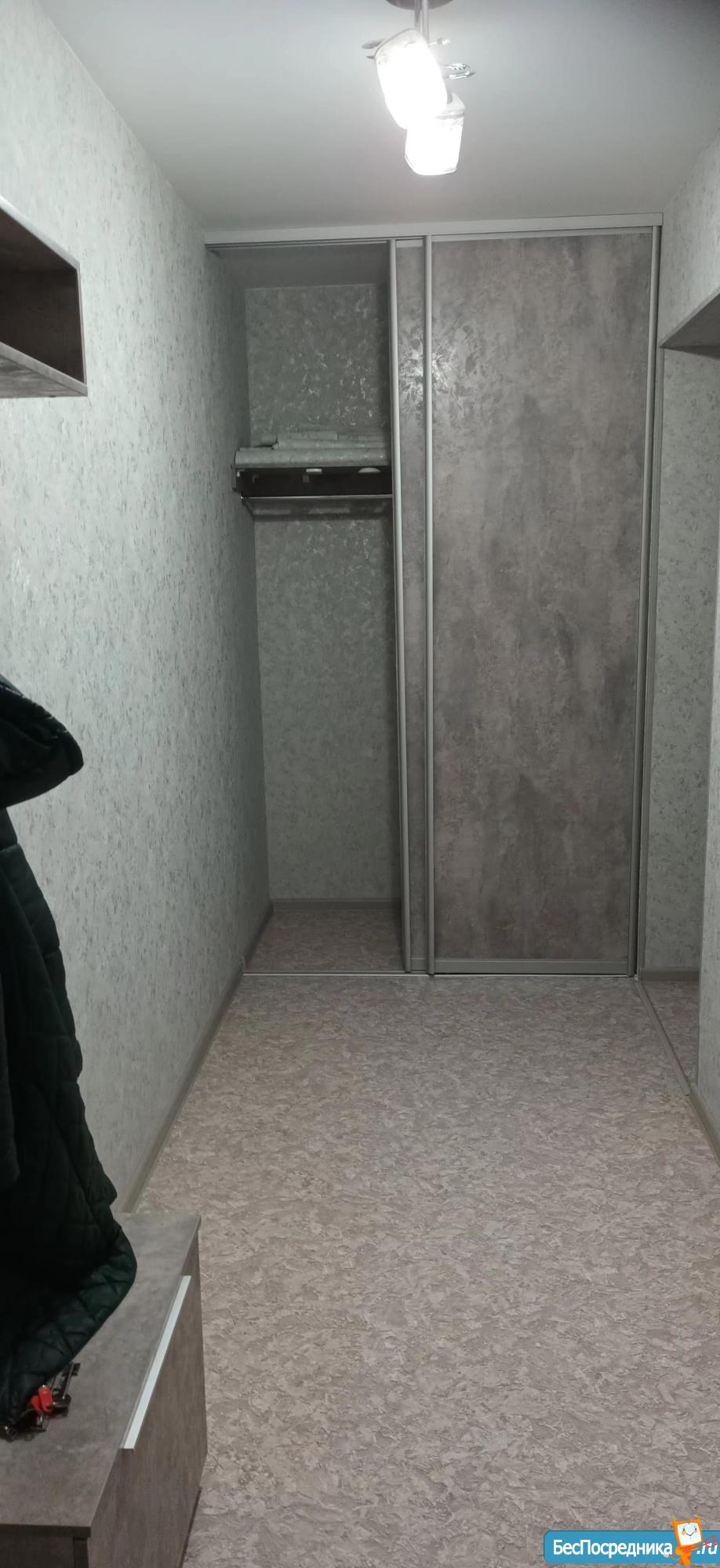 В квартире: в коридоре встроеный шкаф, прихожая, в кухне: плита, холодильник, кухонный гарнитур, стол, стулья. Есть водонагреватель, стиральная машина, диван.