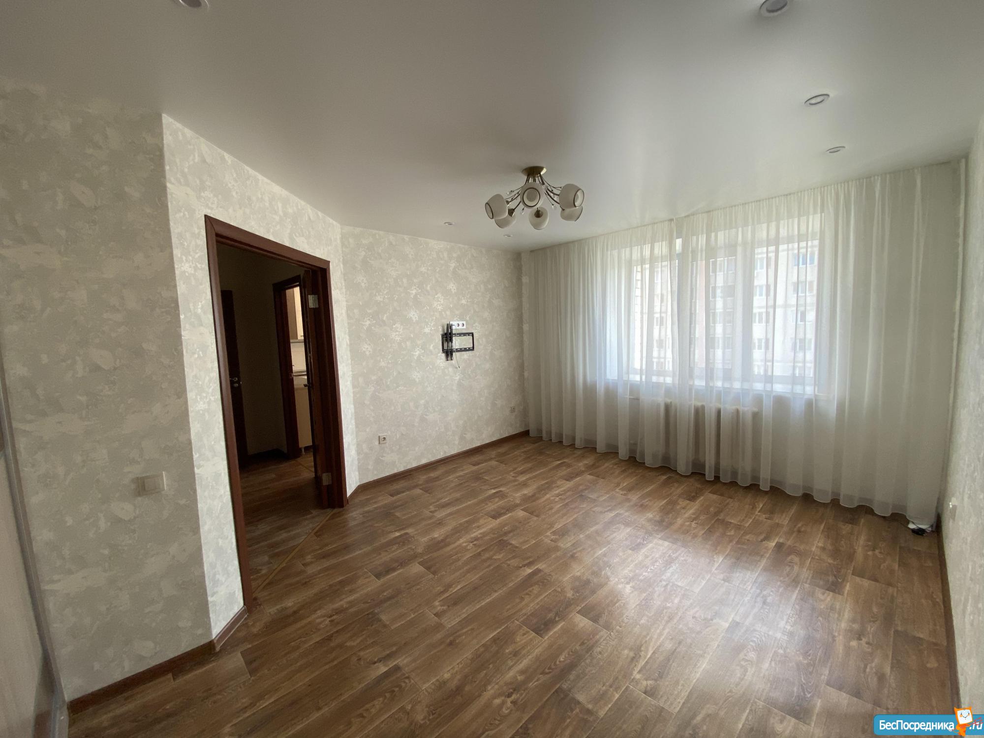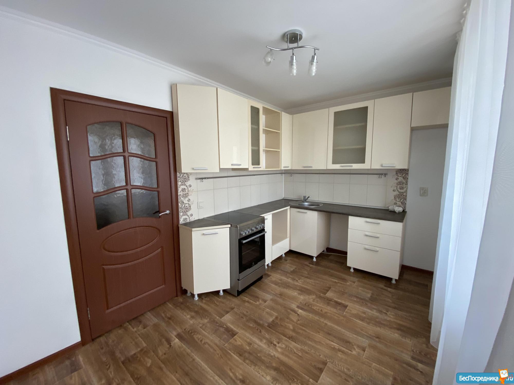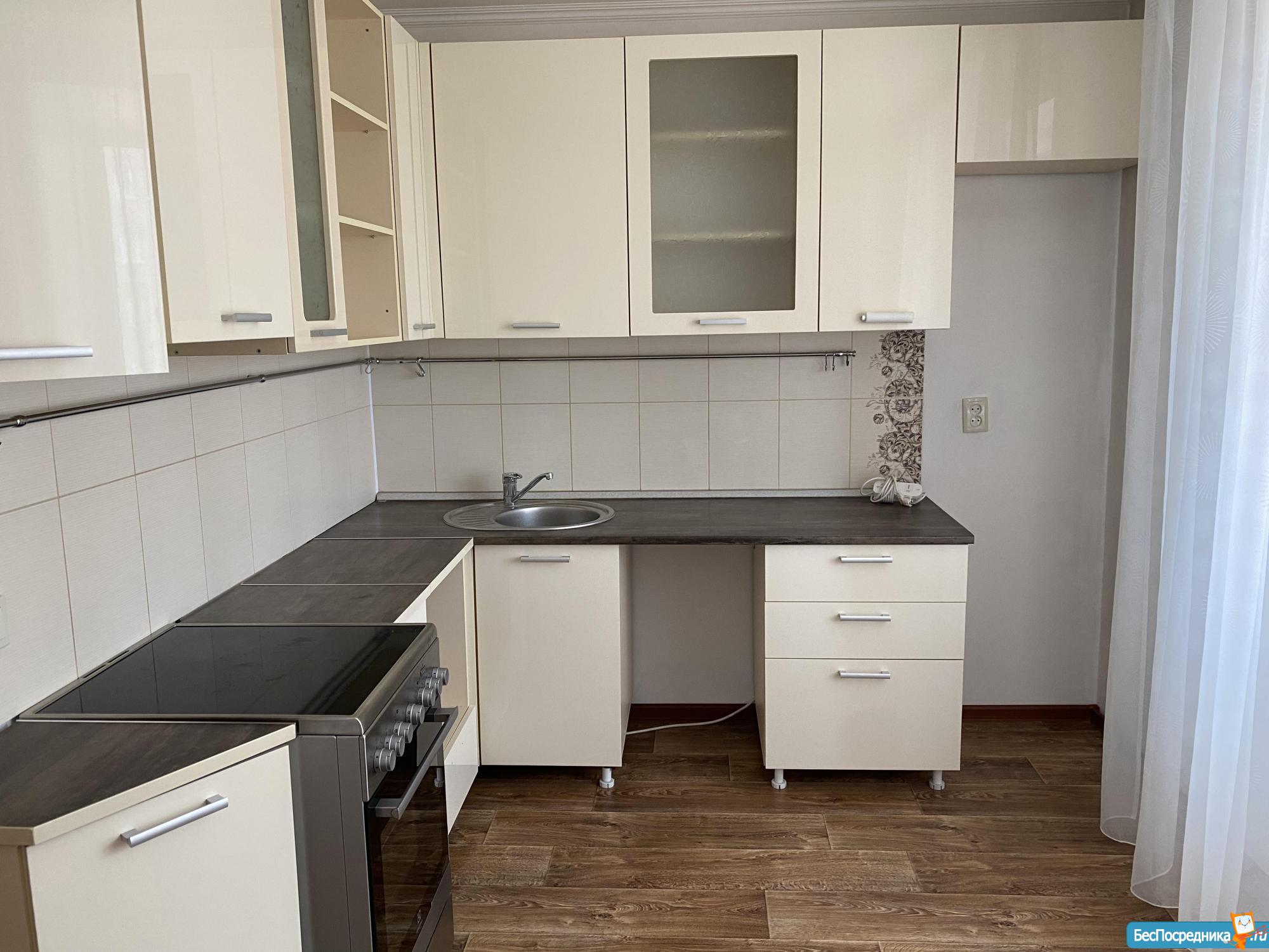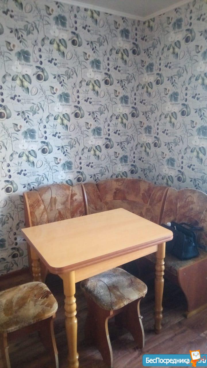 В квартире застекленный балкон, раскладывающийся диван, стол, кухонный гарнитур , новый холодильник, индукционная плита, вытяжка, духовка.