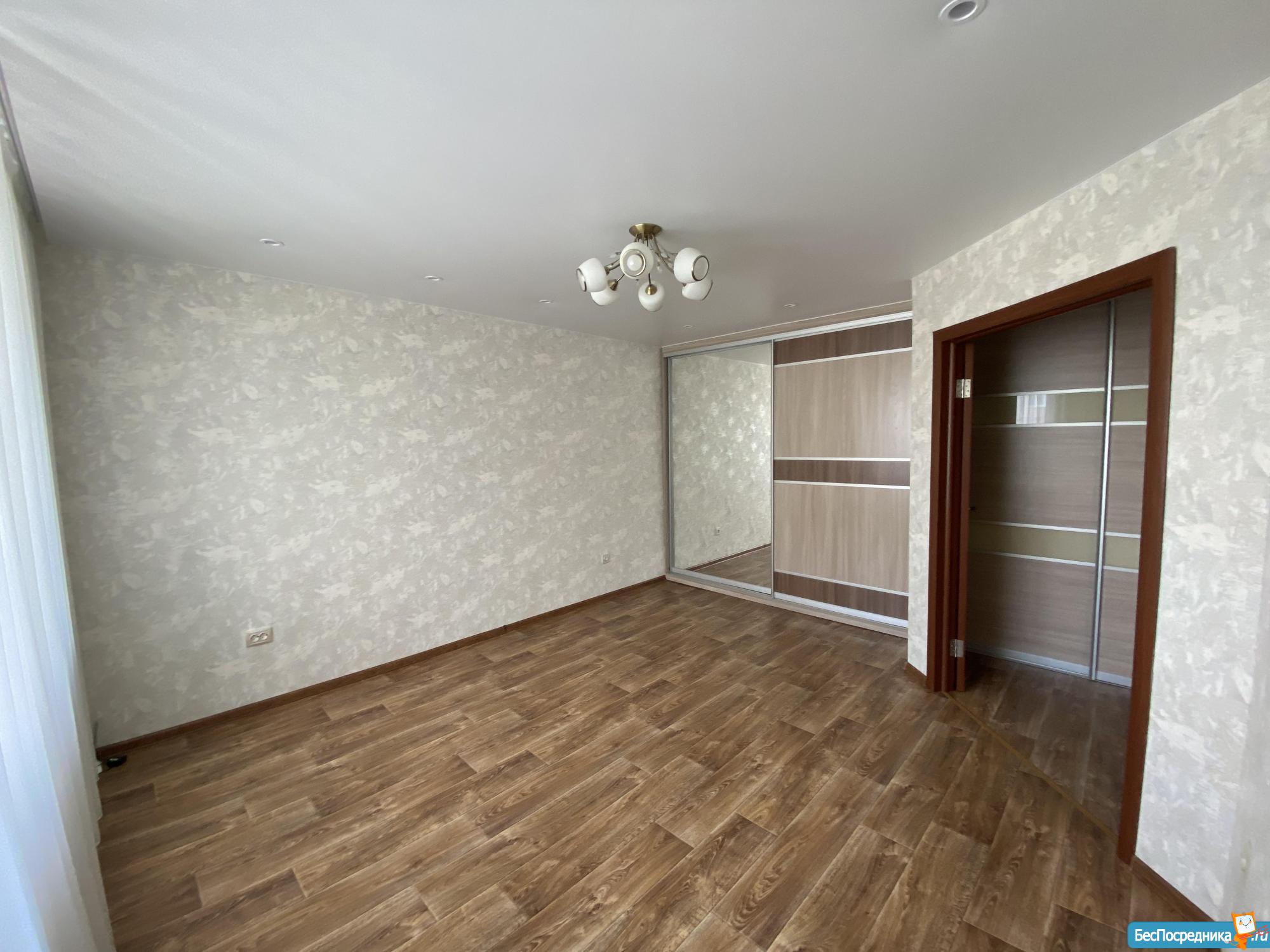Сделан косметический ремонт, балкон застеклен. В квартире есть 2 шкафа купе, кухонный гарнитур, плита, стиральная машина.