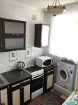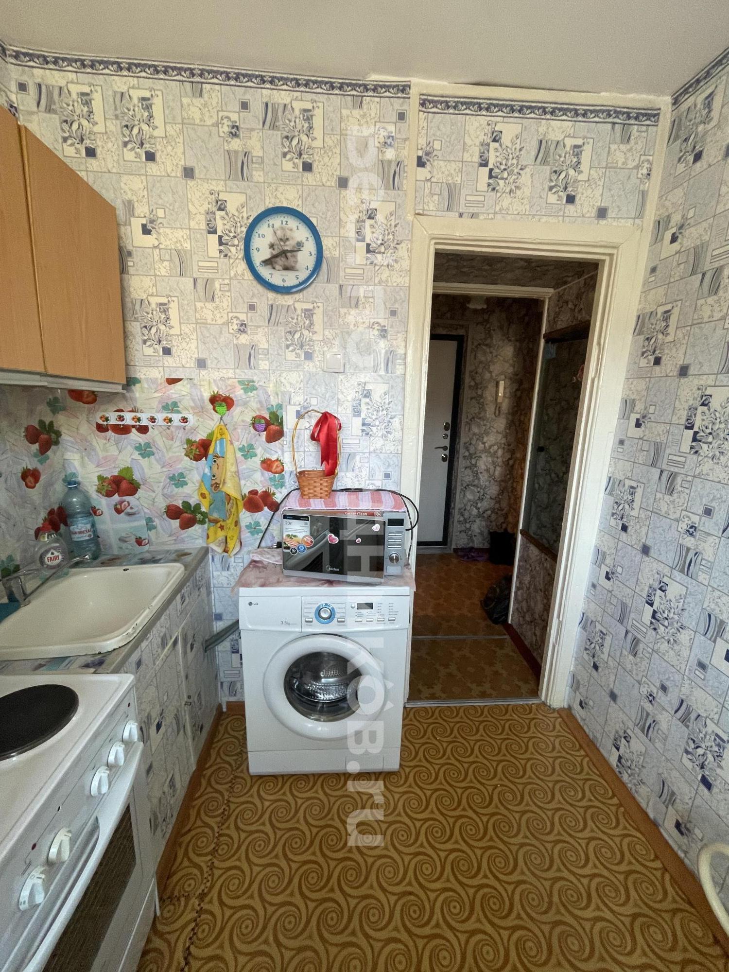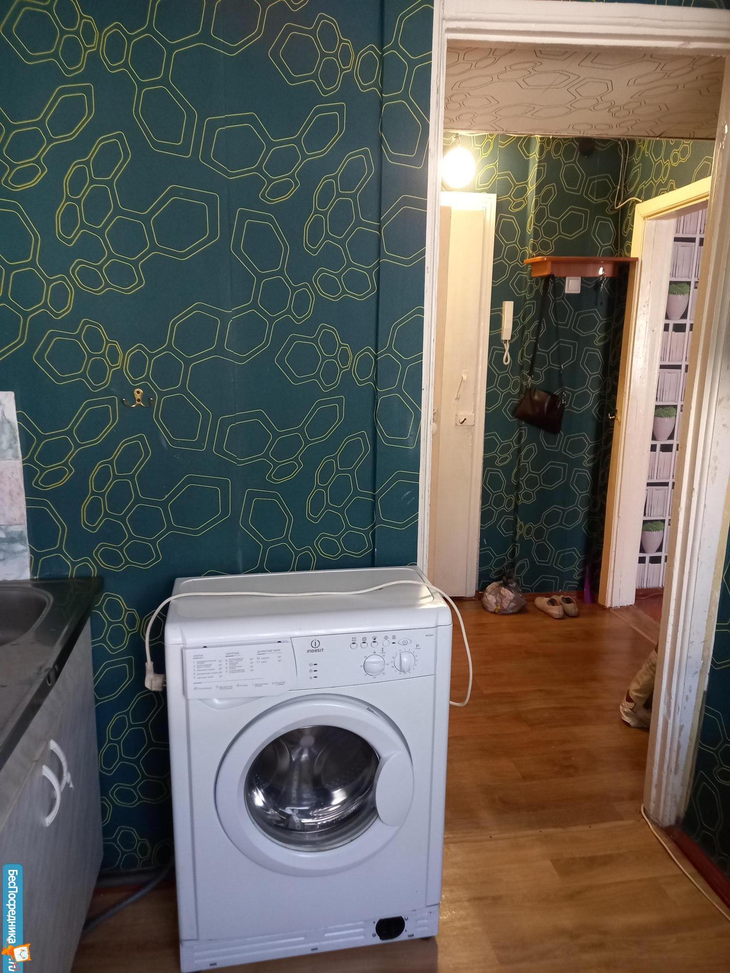 В квартире: шкаф, кухня, холодильник, диван, микроволновая печь, стиральная машина.