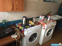 Светлая уютная комната в малосемейке совсем необходимыми вещами для проживания (диван,шифоньер,холодильник,телевизор,стиральная машина ,плита для готовки)