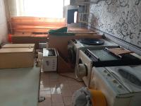Частично мебелированая холодильник, диван, шкаф, стол, стул есть болкон. Туалет, душ, кухня общие на секцию в секции пять комнат.