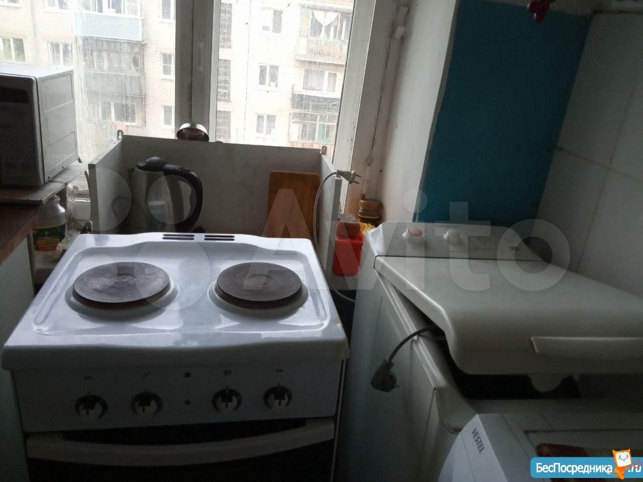 Комната в хорошем состоянии. Балкон застеклён, из мебели и быт. техники есть всё необходимое. Стоит водонагреватель на 50 л., круглый год горячая вода.