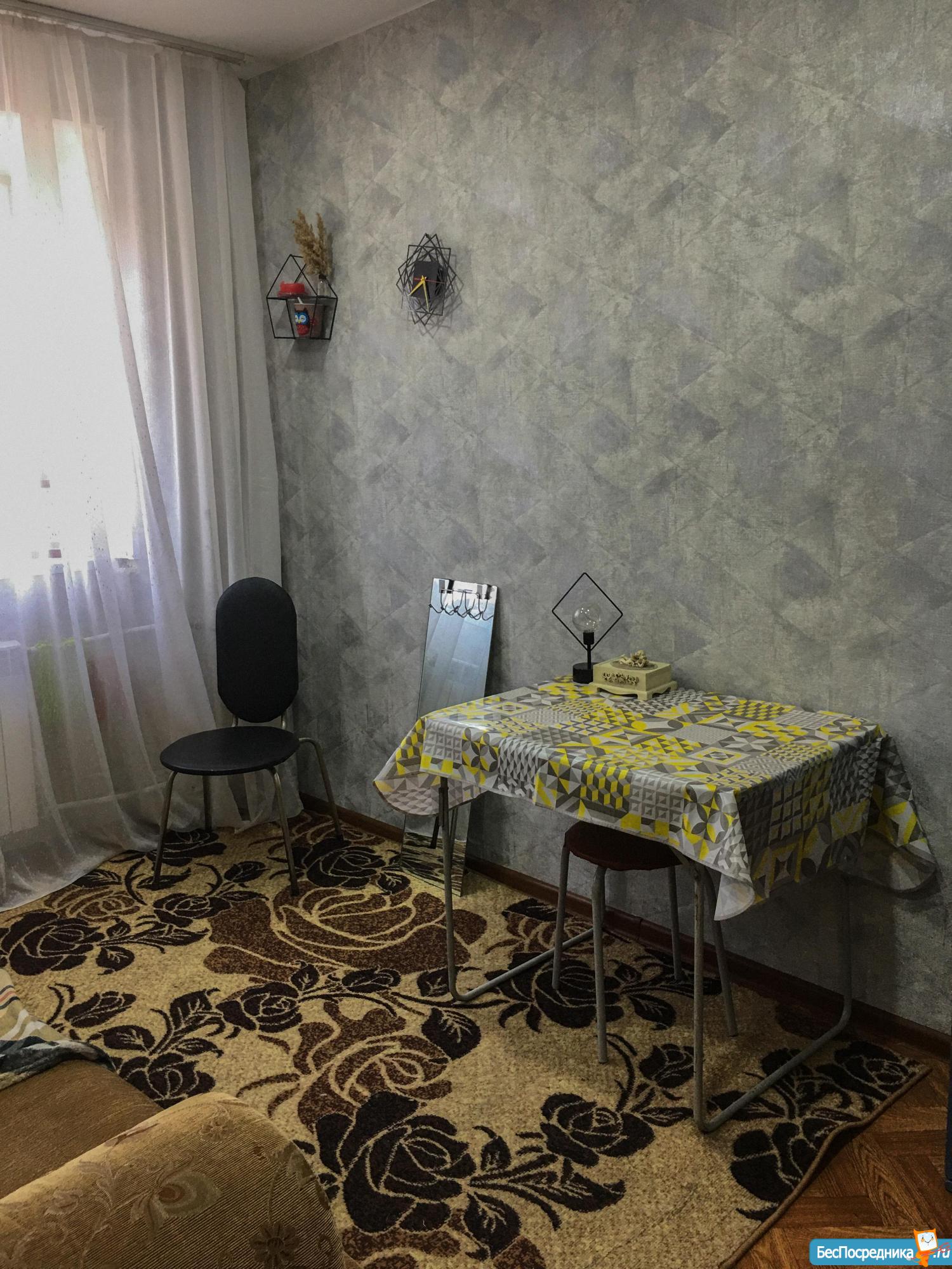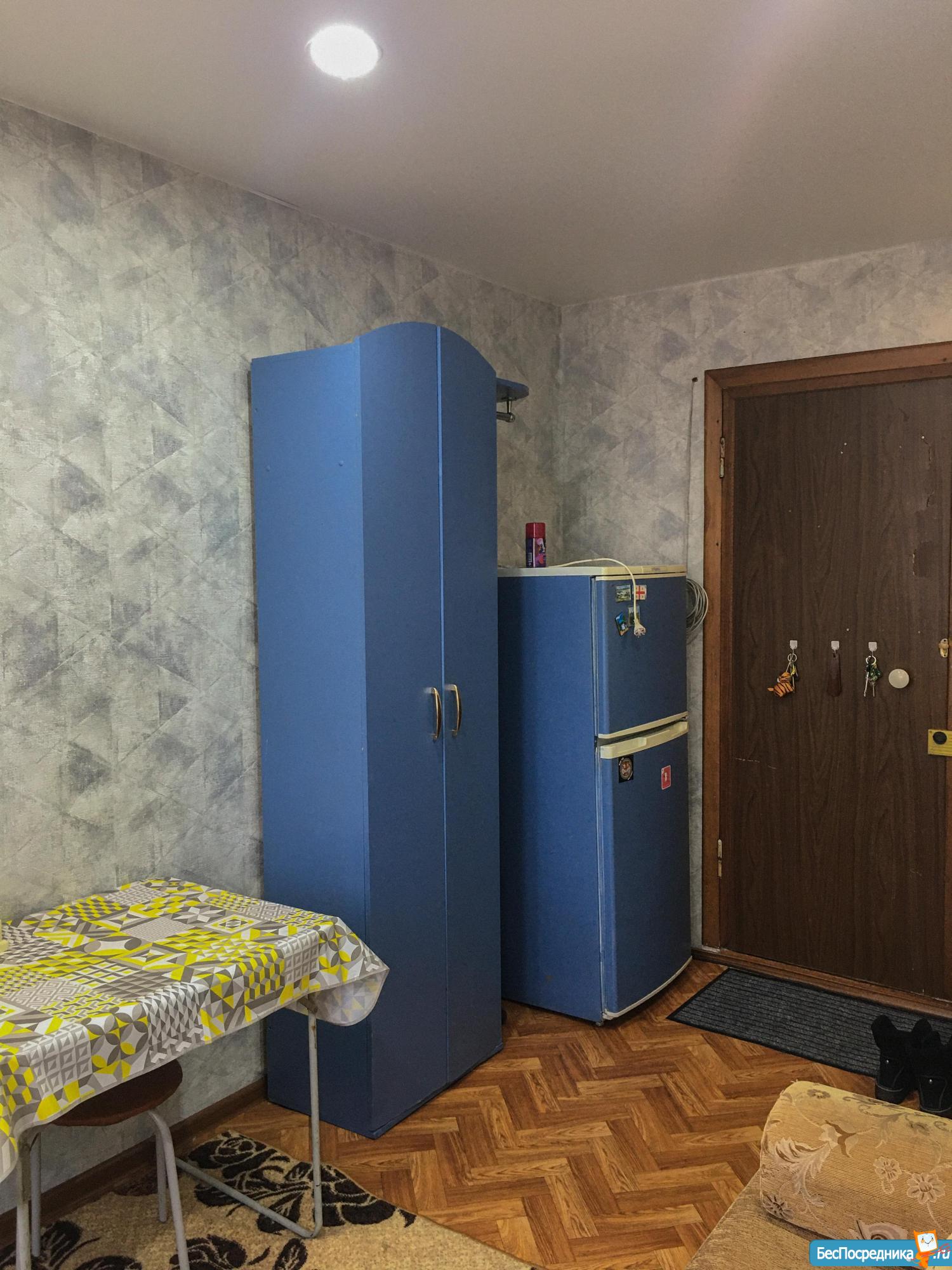 Студию в аренду одинокому человеку. Диван, холодильник, микроволновка, стиральная машина. Чистая, тишина, солнечная сторона. В доме продуктовый магазин, рядом торговый центр "Юность", остановка