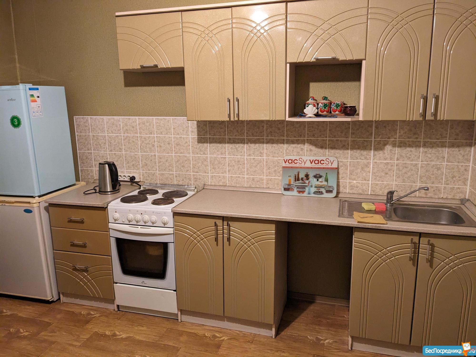 В комнате есть вся необходимая бытовая техника в отличном состояние: холодильник, стиральная машина, микроволновая печь, варочная панель, духовой шкаф, вытяжка.
