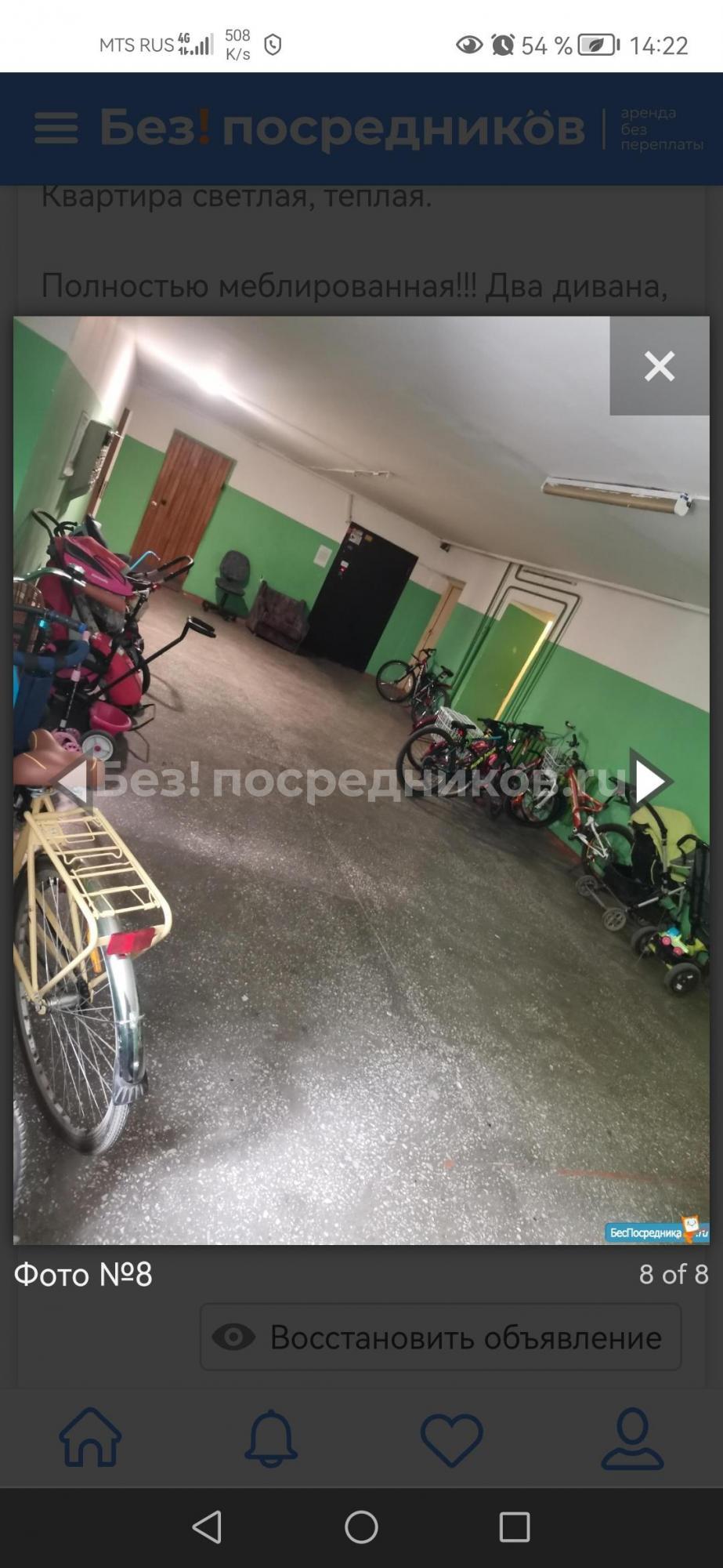 Комната находится на 9 этаже, лифт не работает!!!