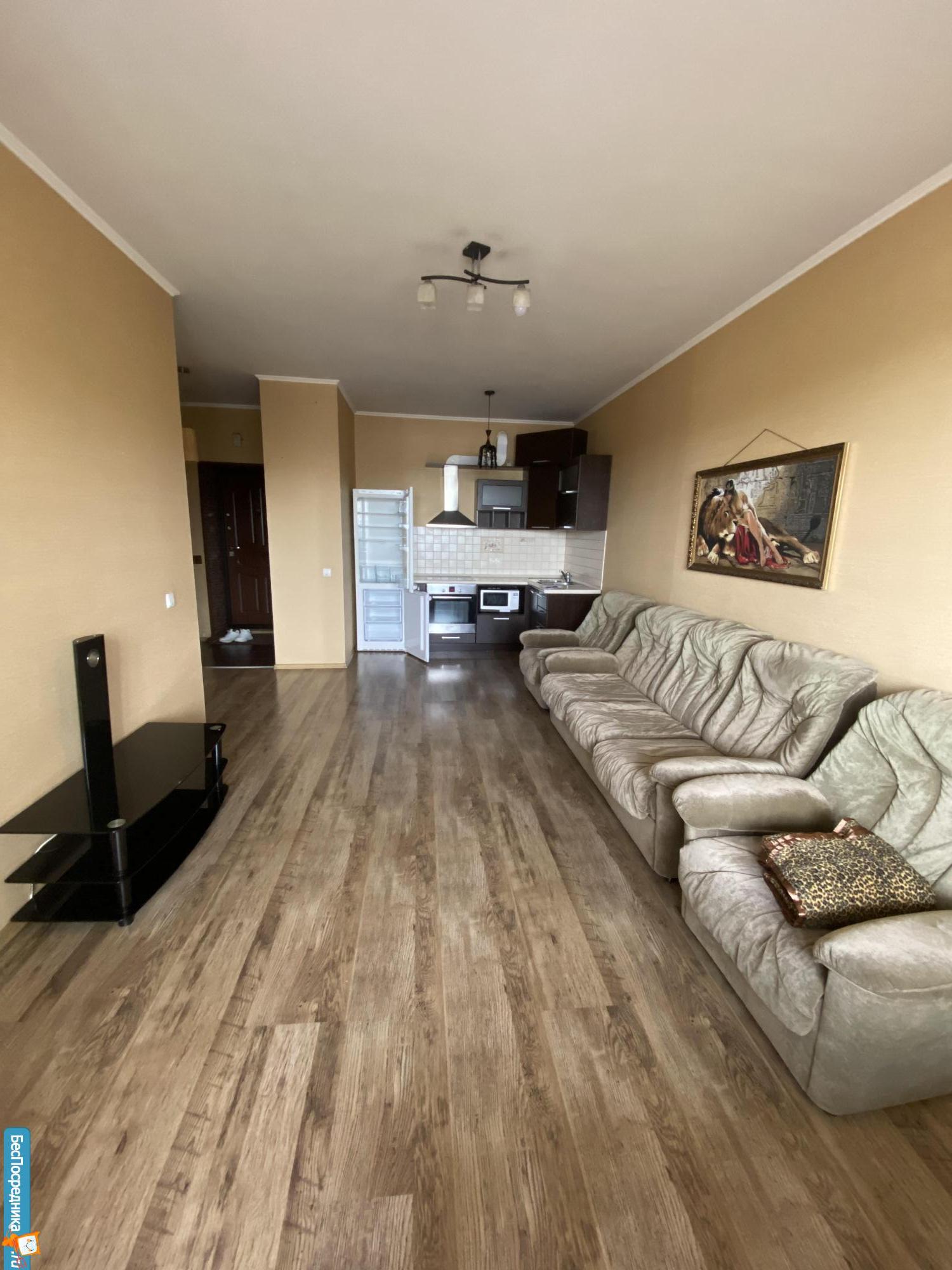 Отличная Квартира с кухней-студией.Спокойный район,охраняемая территория.Сдаём порядочной,чистоплотной семье на длительный срок.