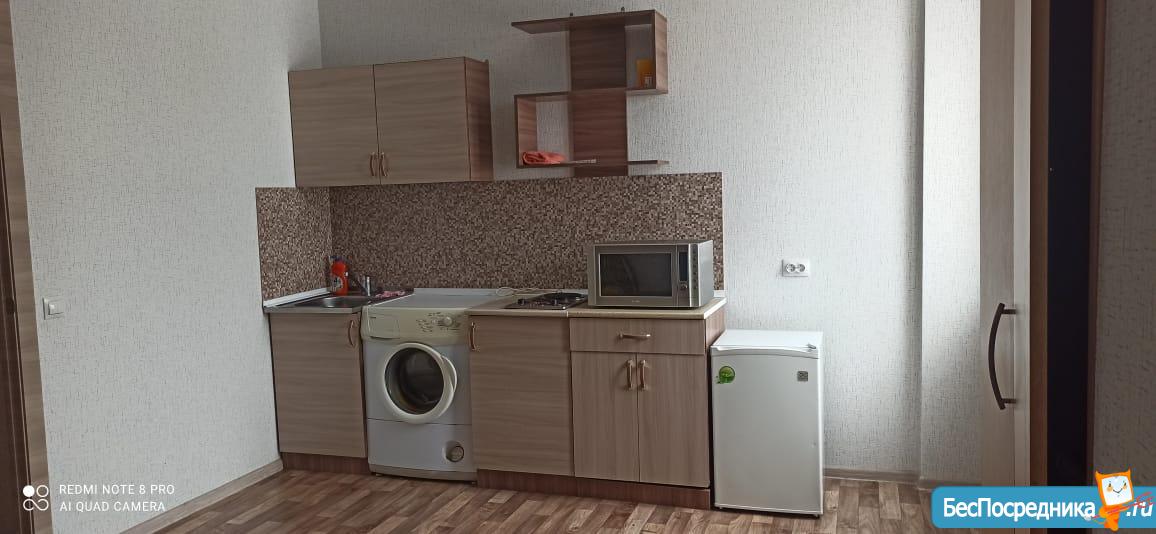 Сдам частично меблированную(диван, шкаф, холодильник, стиральная машина; при необходимости можно решить вопрос с другой мебелью) студию в новостройке. 12000 всего без доплат по счётчикам.