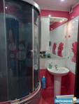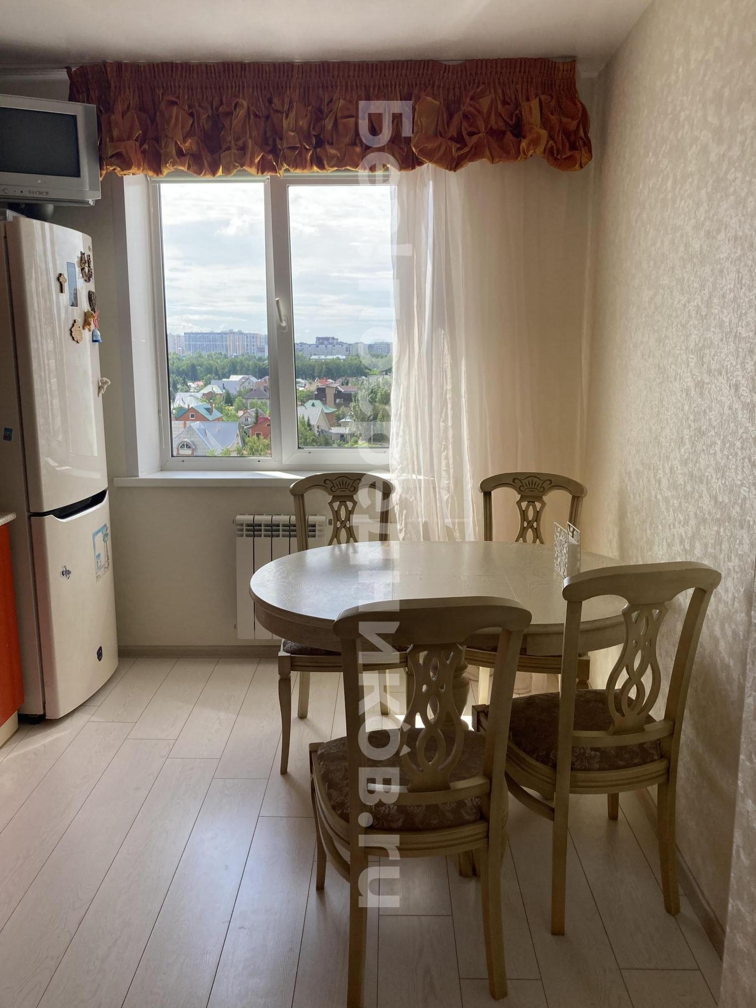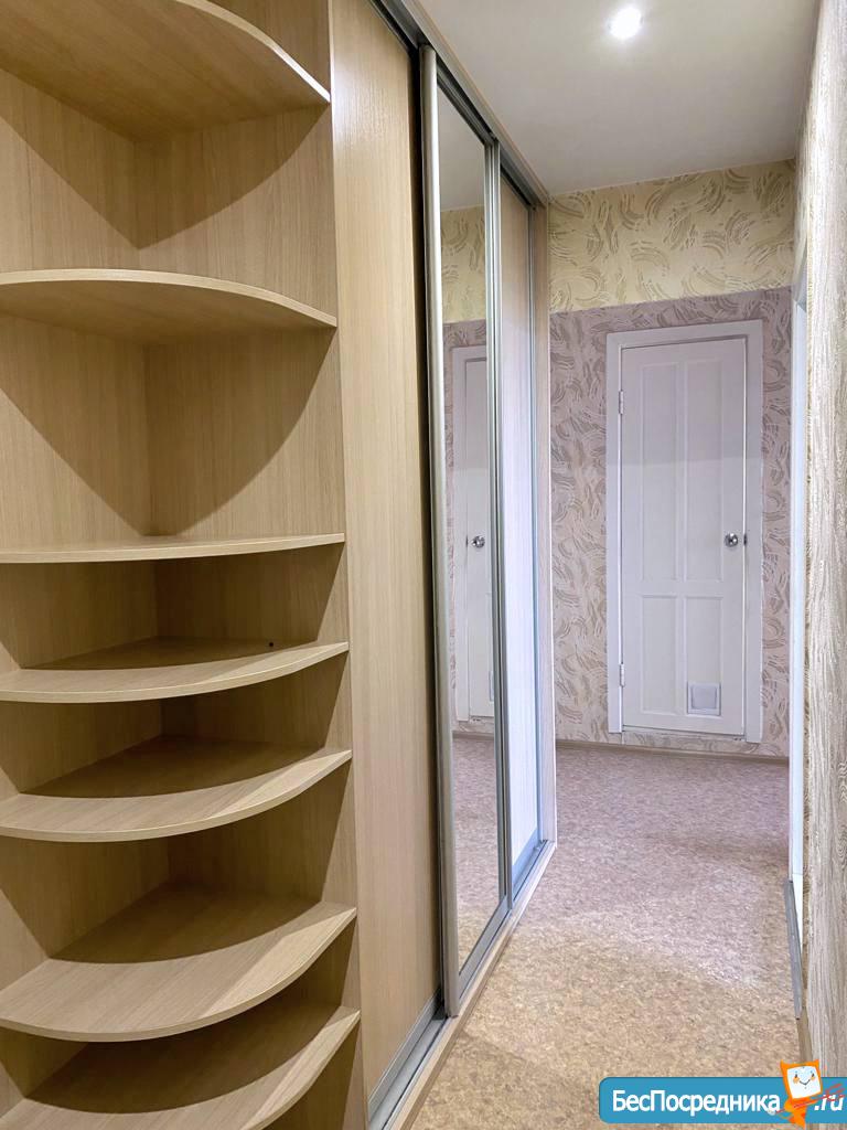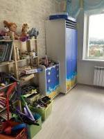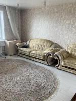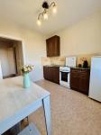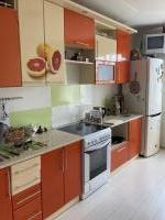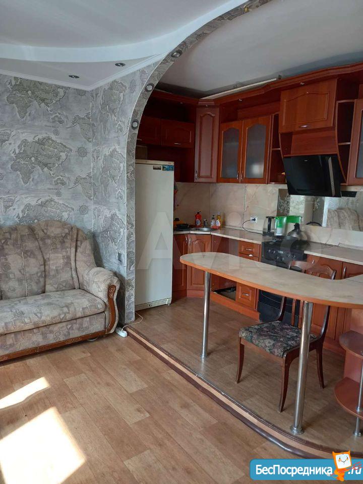 Большая комната с балконом, просторная кухня, раздельный санузел. В квартире имеется бытовая техника: холодильник, электроплита, чайник, стиральная машинка. Также, в квартире есть мебель: большой двухспальный диван, шкаф - купе. На кухне: стол, уголок кухонный, гарнитур.