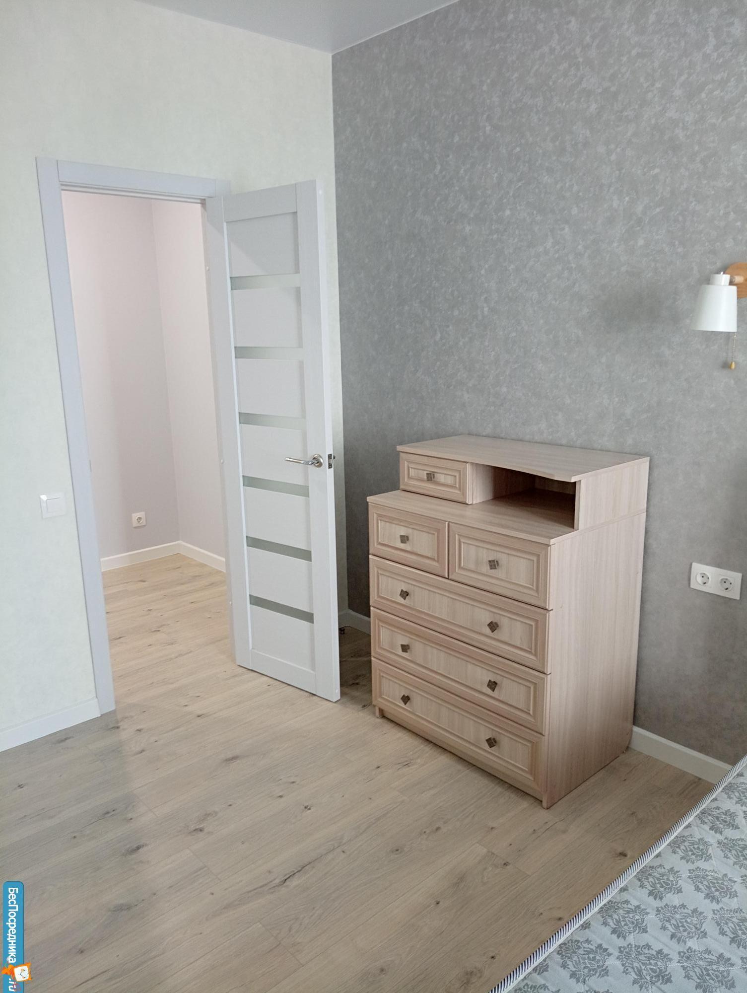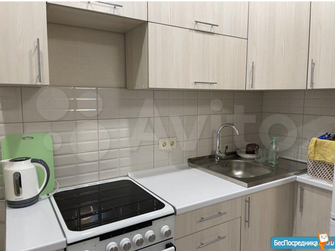 Из мебели и декора в квартире имеется: встроенный вместительный шкаф-купе, кухонный гарнитур с варочной панелью и вытяжкой, на окнах тюль и портьеры. Проведен интернет Дом.ру.