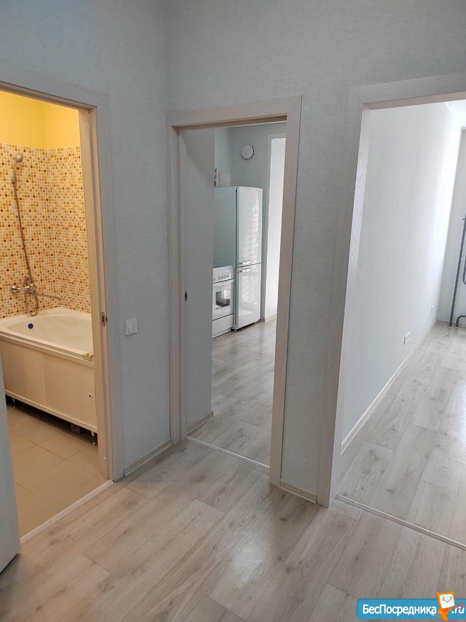 Новая евродвушка (кухня-студия + комната) с ремонтом. Собственник! Имеется вся необходимая мебель и техника для комфортного проживания. 4 спальных места. Без животных, не курящим! На длительный срок. В подъезде консьерж. Интернет и кабельное телевидение по необходимости за отдельную плату. Коммунальные платежи по счетчикам: холодная вода, горячая вода, водоотведение и электричество оплачивается дополнительно.