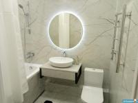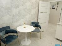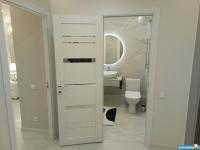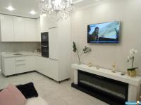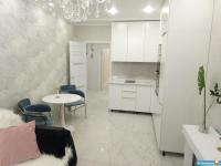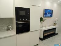 В квартире новый современный ремонт ,кухня-студия,кухонный гарнитур,плита,холодильник,барная стойка,барные стулья,диван,спальня в белом стиле,матрас,шторы,стиральная машинка,ванная комната в белом стиле-кафель,встроенный шкаф в коридоре ,балкон застеклён.