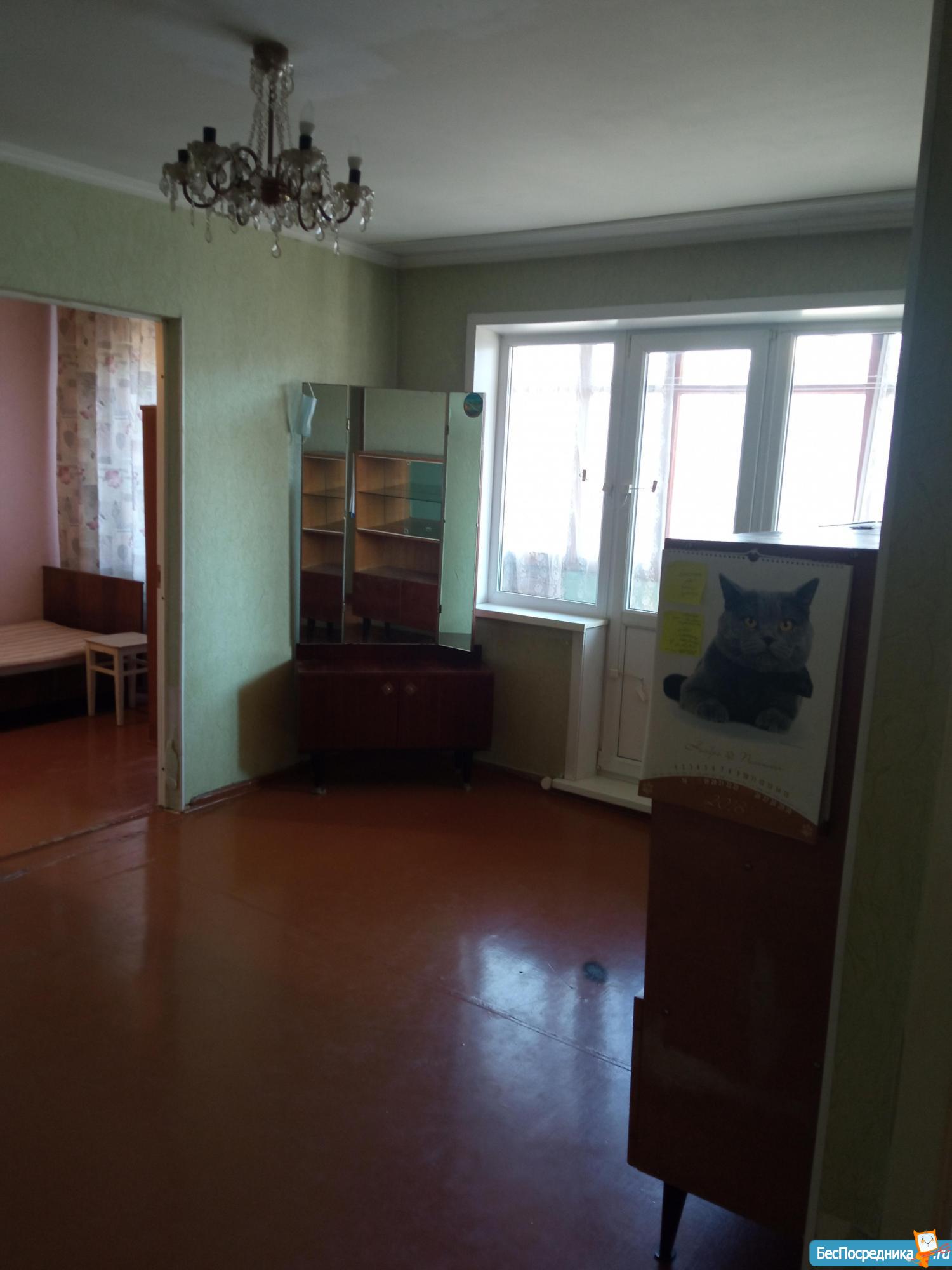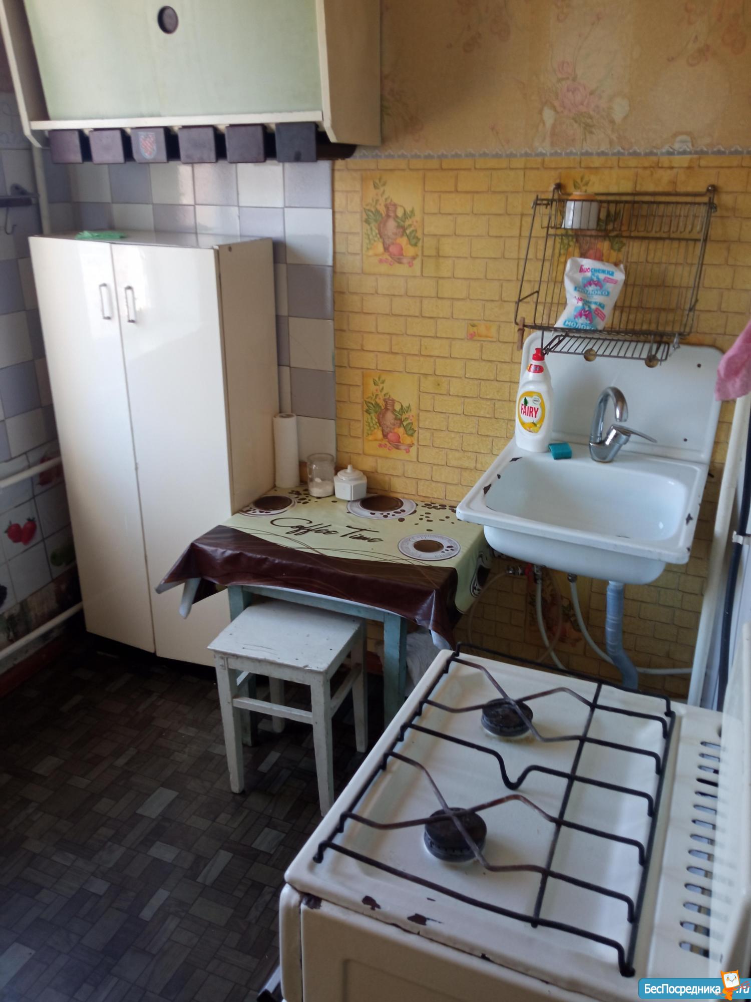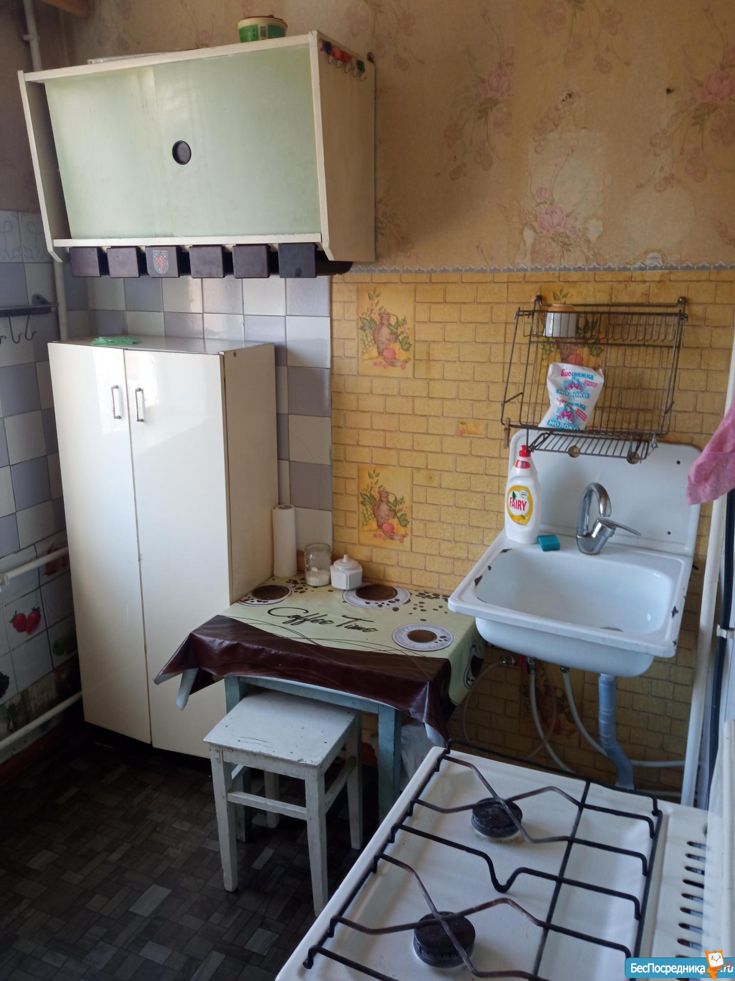 Хрущёвка .Расположена в тихом районе,школа детсад магазины транспорт рядом.Ремонт в квартире простой , мебель старая.