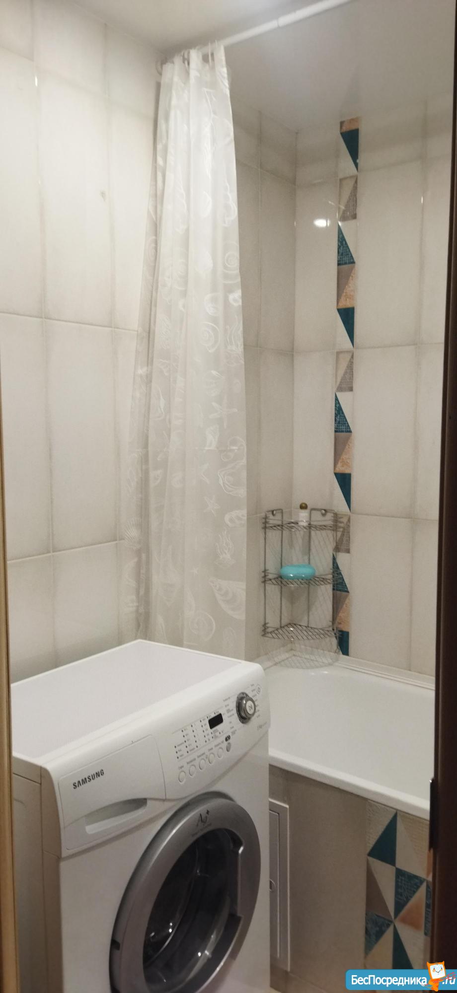 Есть вся необходимая мебель и техника: раскладной новый диван, большой шкаф-купе, кухонный гарнитур, стол, стулья, холодильник, электроплита, чайник, микроволновая печь, стиральная машина, пылесос, телевизор, wifi роутер, утюг, торшер, гладильная доска, сушилка для белья.