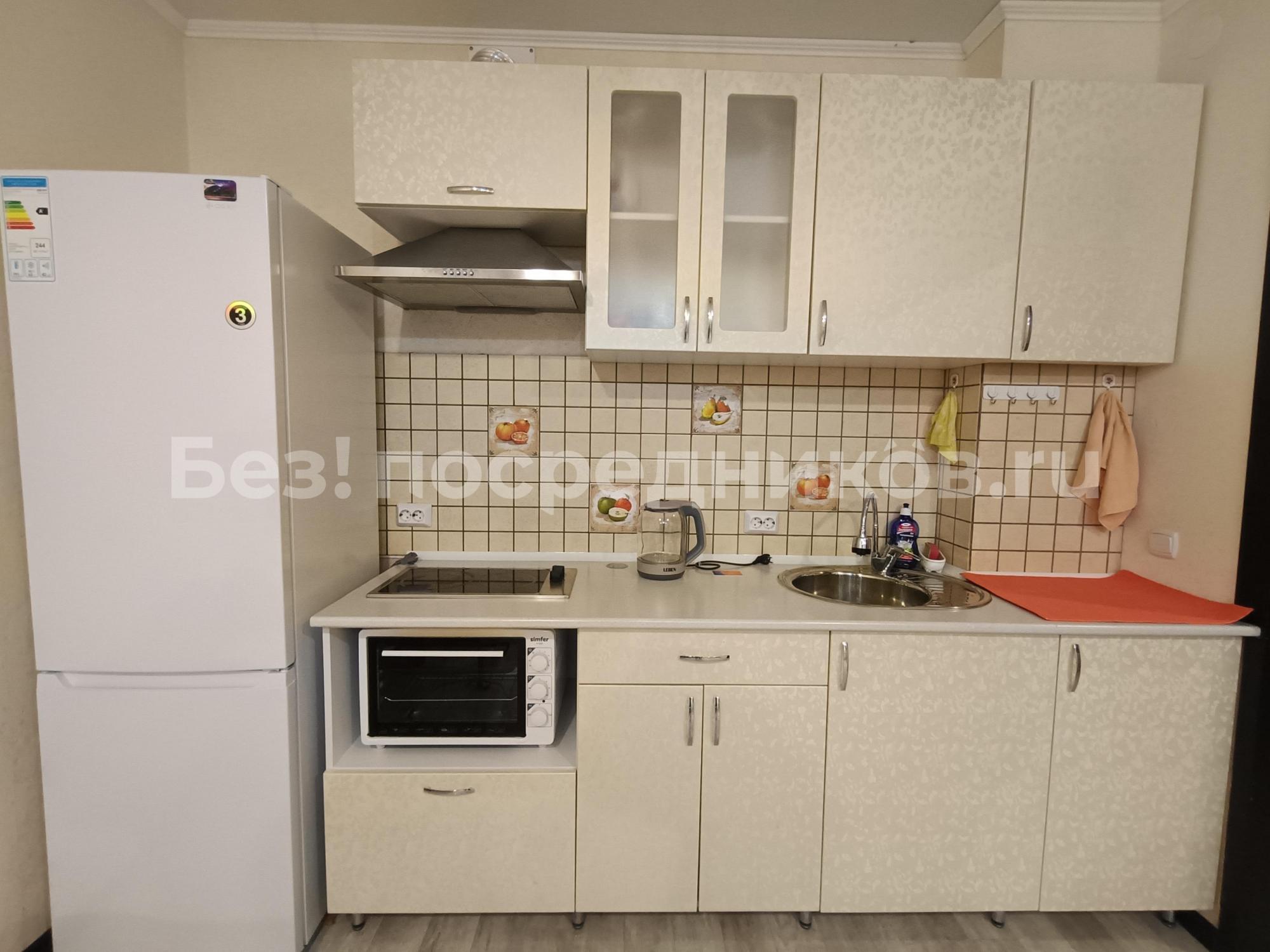 В квартиpе есть холодильник, варочная панель, духовка, вытяжка, микроволновка, чайник, водонагреватель, стиральная машина, сушилка, телевизор. Два вместительных шкафа, комод, угловой диван.