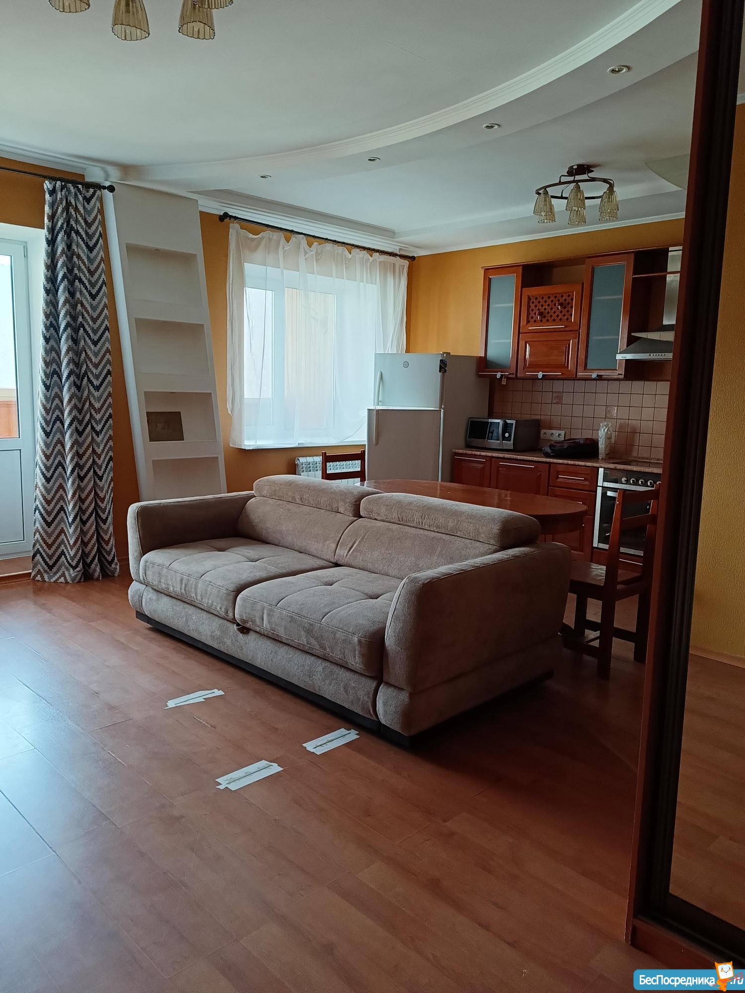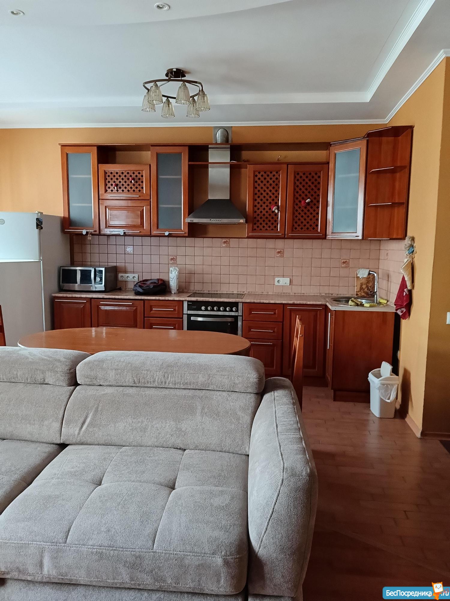 2 спальни + кухня-гостиная, есть вся мебель, холодильник, микроволновка, стир-я машина, водонагреватель, чайник, утюг. Сдаю на долгий срок Коммуналка по квитанции полностью. .