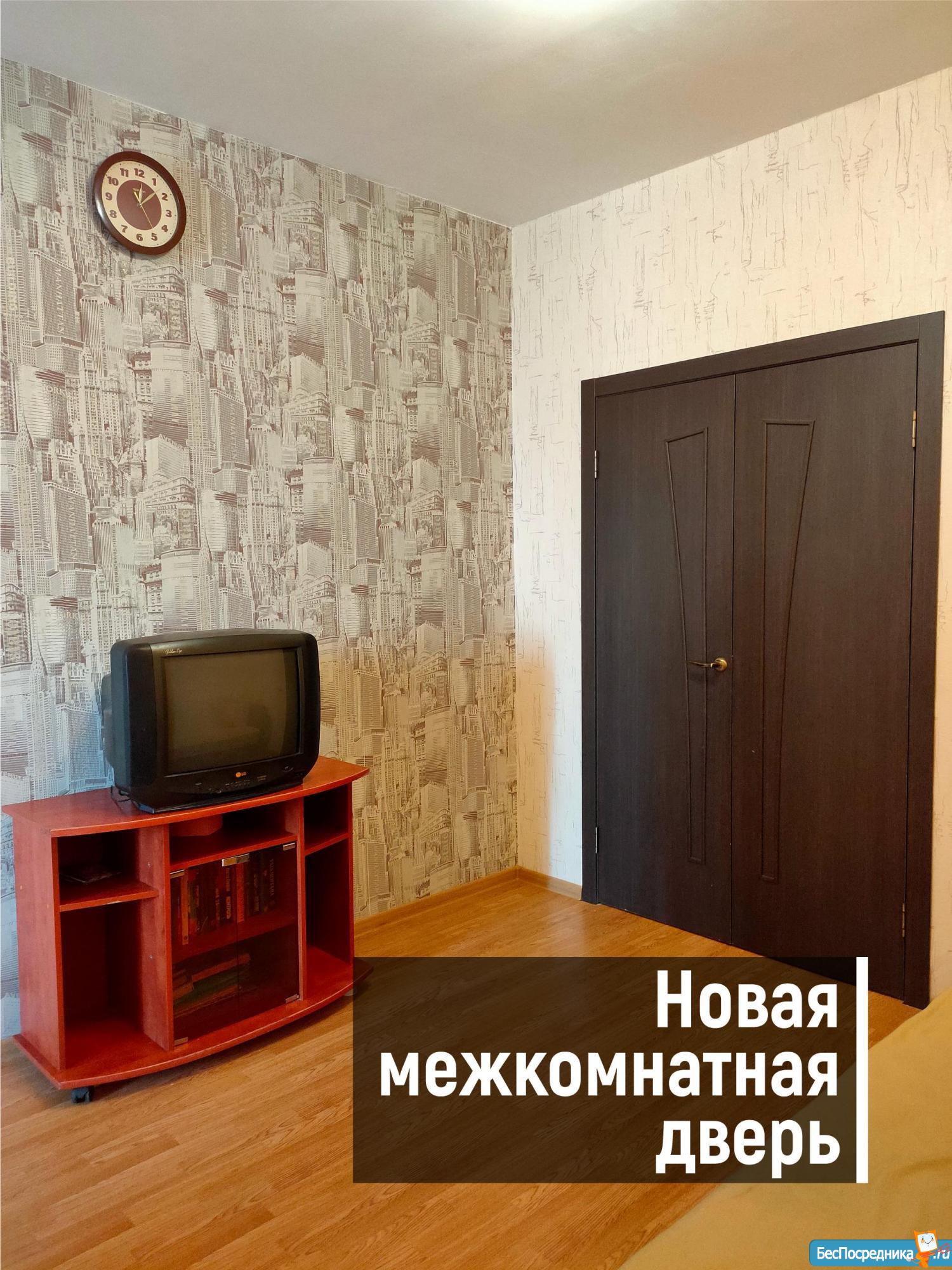- В гостинной новые межкомнатные двери