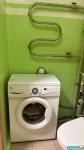 Есть кухонный гарнитур с электроплитой, холодильник и стиральная машина, два вместительных шкафа.