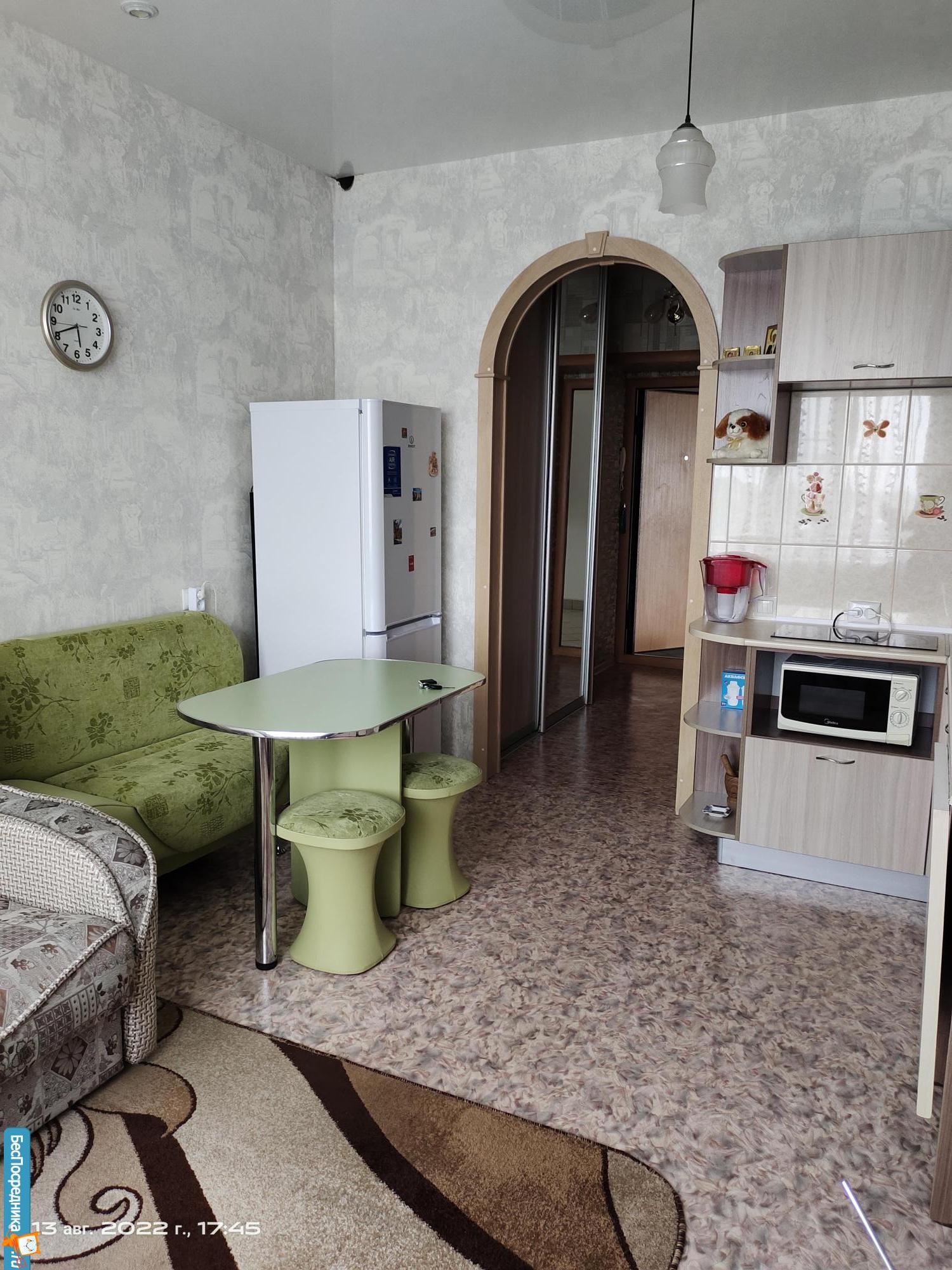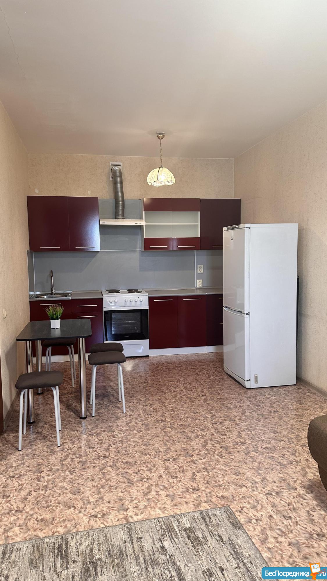 Теплая, светлая уютная квартира в новом доме с хорошим ремонтом, на полу кафель, в ванной кафель, шкаф, камод, стол, стулья, холодильник, стиральная машина, телевизор, напольная сушилка для белья, плита электрическая с духовкой , кухонный гарнитур, новый матрас