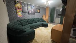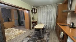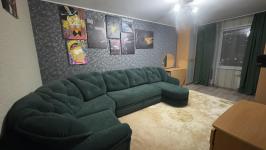 Сдам квартиру "евротрешка" 62 кв.м в жилом комплексе "Времена года" на длительный срок. В квартире 3 полноценные комнаты - кухня-гостиная, спальня, большая детская, также есть гардеробная и две просторные лоджии с витражным остеклением с прекрасным видом. Санузел совмещён, отдельно хозблок, где установлена стиральная машина и бойлер. Квартира теплая, светлая. Из мебели есть все необходимое: кухонный гарнитур с варочной панелью и духовым шкафом, холодильник, микроволновка, чайник, посуда, ТВ. В спальне большая 2-х спальная кровать, тумбы, шкаф и косметический стол с зеркалом. В детской есть компьютерный стол, ТВ и кровать с ортопедическим матрасом.