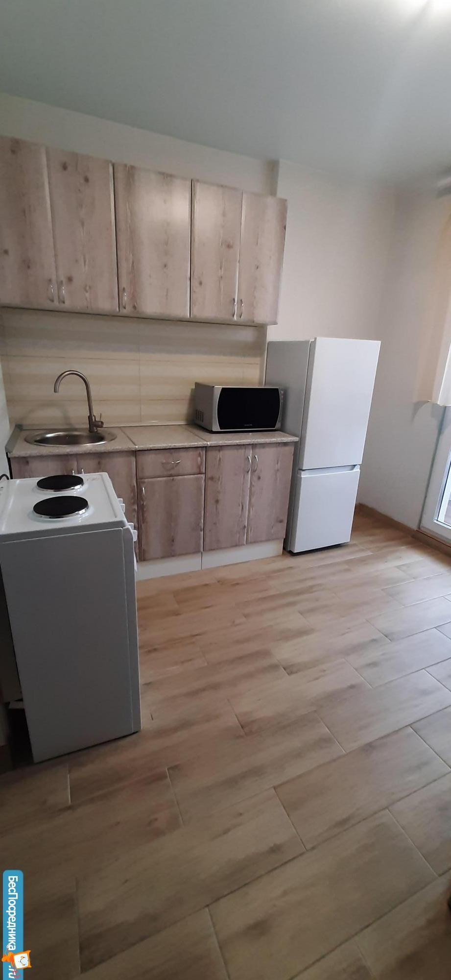 Новостройка, никто не жил.Евроремонт. Отделка квартиры в скандинавском, спокойном стиле. На кухне встроенная техника, плита индукция, есть посуда, раковина каменная. Потолки натяжные, в комнате парящий. Лоджия с отделкой. Есть ТВ, диван, гардеробная комната. Мебель, техника - всё новое. Стиральная машина, ванна. Видеонаблюдение, парковка. Коммуналка по счетчикам. Дом теплый, зимой отопление не включали. В шаговой доступности остановки транспорта во все направления города.
