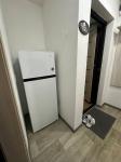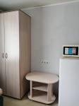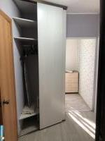 В квартире имеется микроволновка, чайник, плита, стиральная машина, холодильник. В комнате односпальная кровать с новым матрасом и большим встроенным шкафом, в зале стоит диван и не большой журнальный стол.