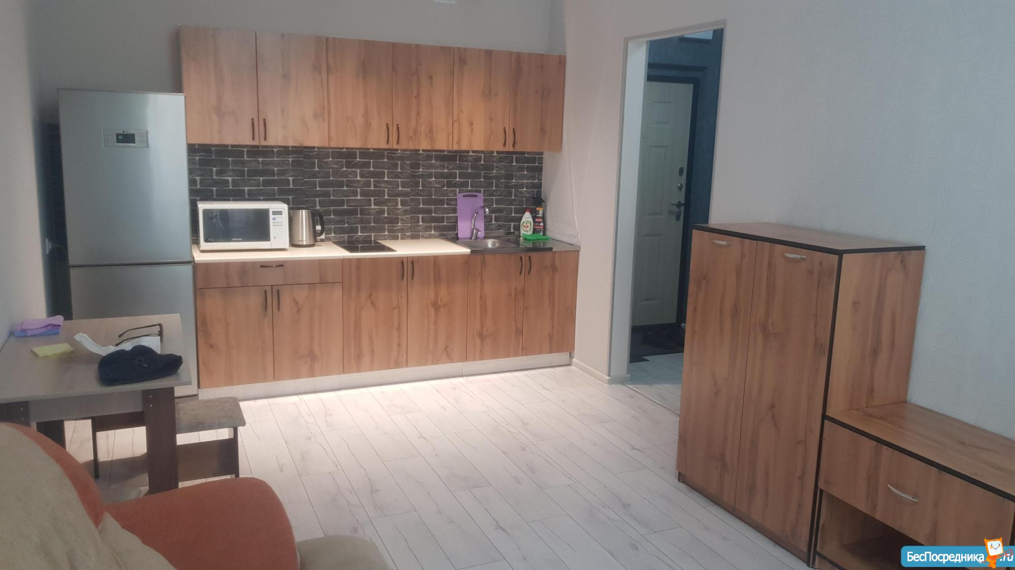 Квартира в новостройке, после ремонта, вся сантехника новая, большая лоджия.Из мебели: кухонный гарнитур, обеденный стол и стулья , плита , шкаф, в доме ведётся видеонаблюдение, парковка во дворе. Удобная транспортная развязка.Сдаю на длительный срок, цена 14000 рублей в месяц, плюс оплата по счётчикам. Залог возвратный – 5 000 руб. Являюсь собственником, сдаю без комиссии.