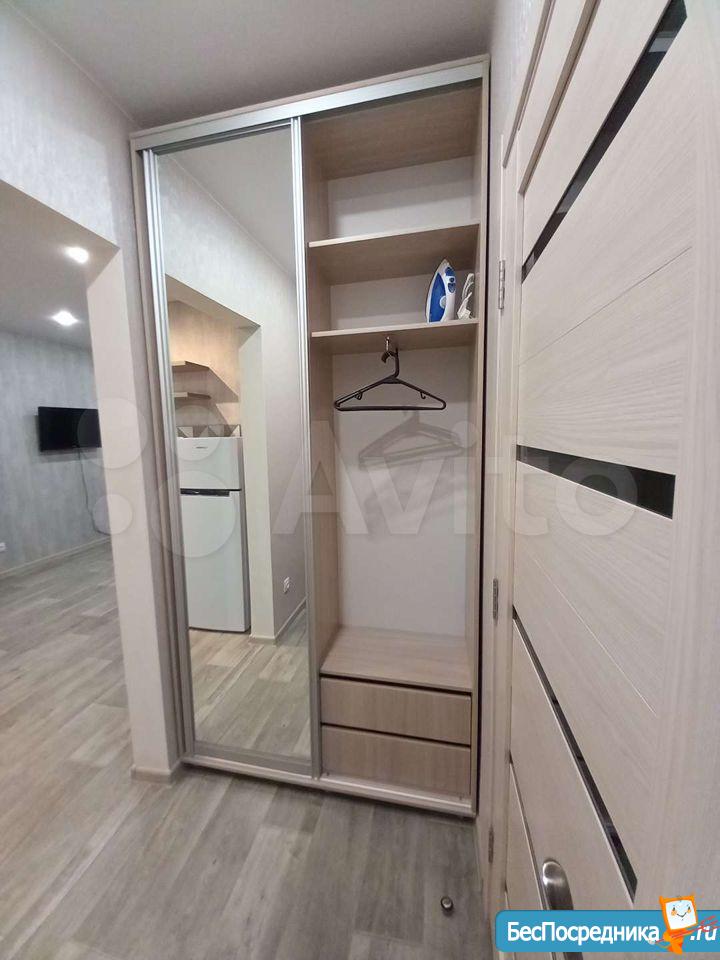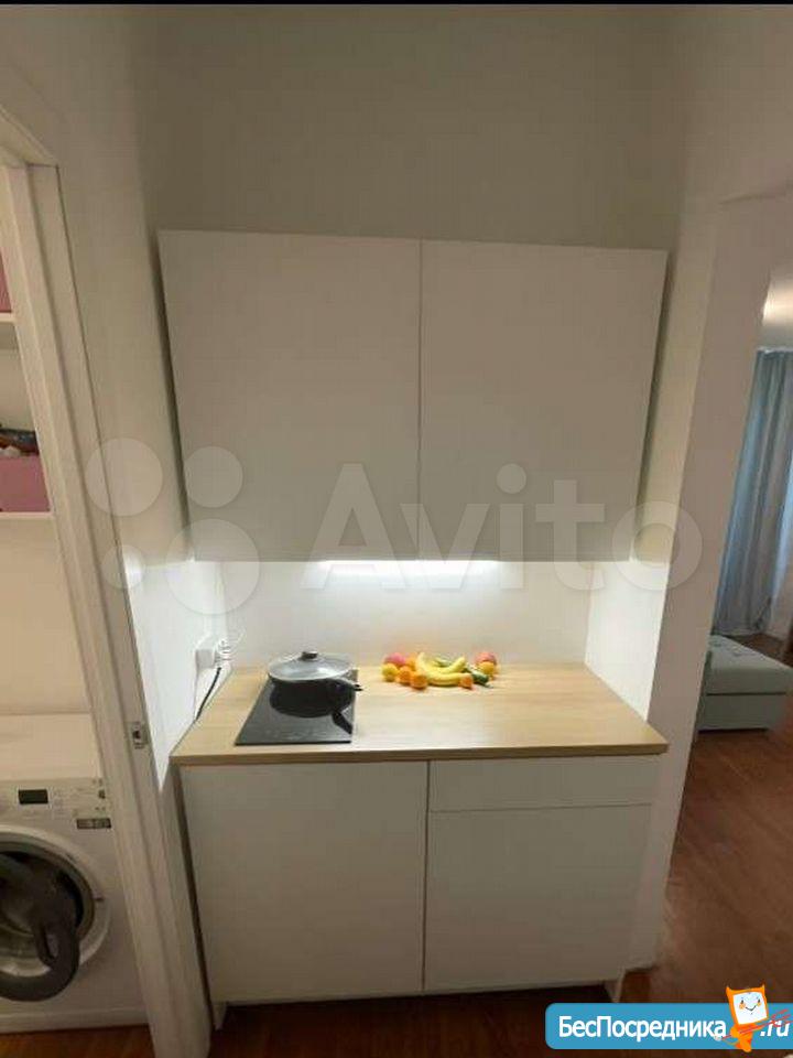 Сдается студия в новом развивающемся районе. В шаговой доступности Метро, Арена, Лента. В самом доме Мария-Ра, Монетка.В наличии нет дивана, телевизора, стиральной машины (по договоренности докомплектуем). Свет и вода плюсом по счетчикам.