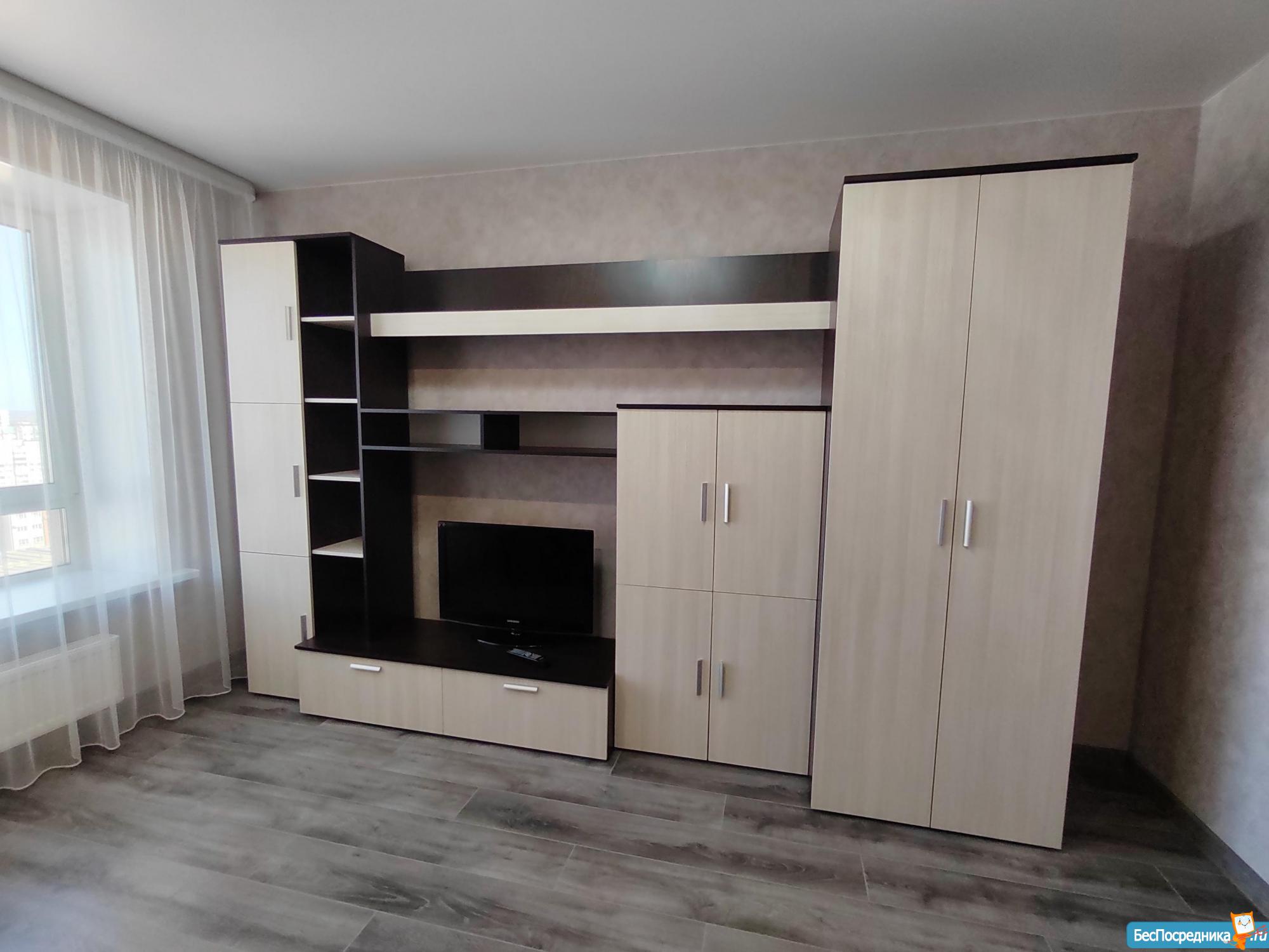 Квартира укомплектована мебелью. Есть холодильник, плита, духовка, стиральная машинка водонагреватель - все новое. Также имеются утюг, сушилка для белья, гладильная доска.