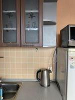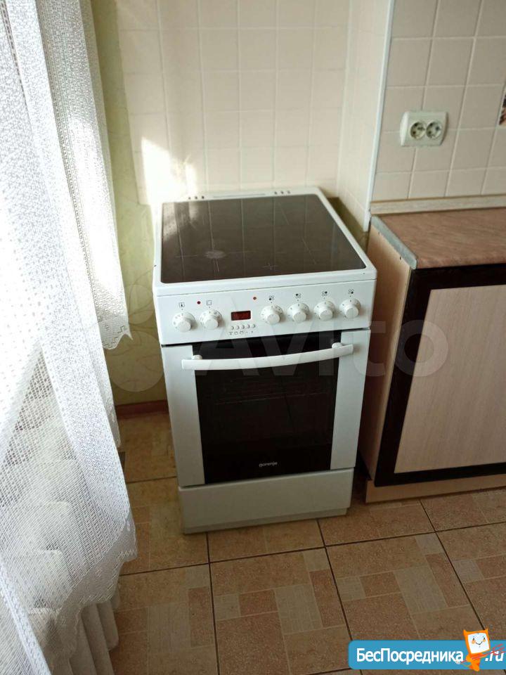 Есть плита, холодильник, стиральная машина, микроволновка, чайник, диван, шкаф-купе, телевизор.