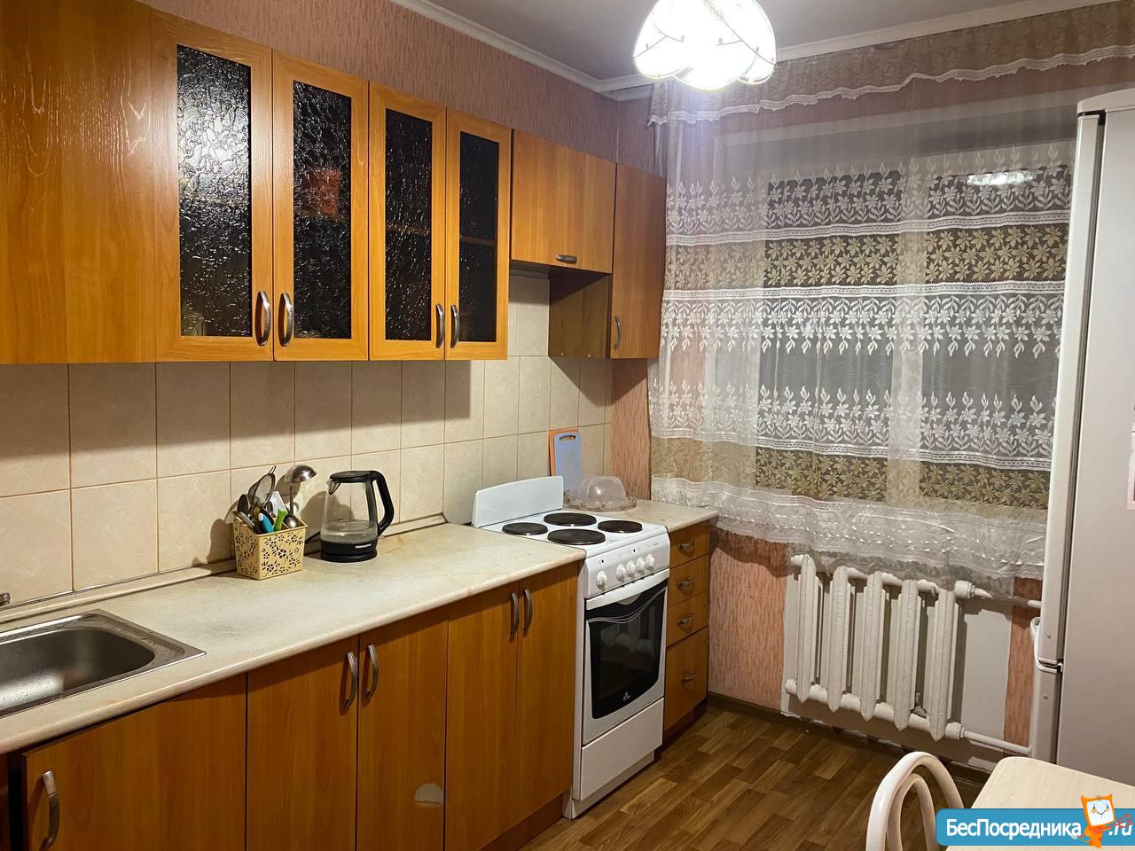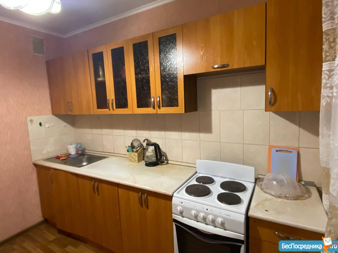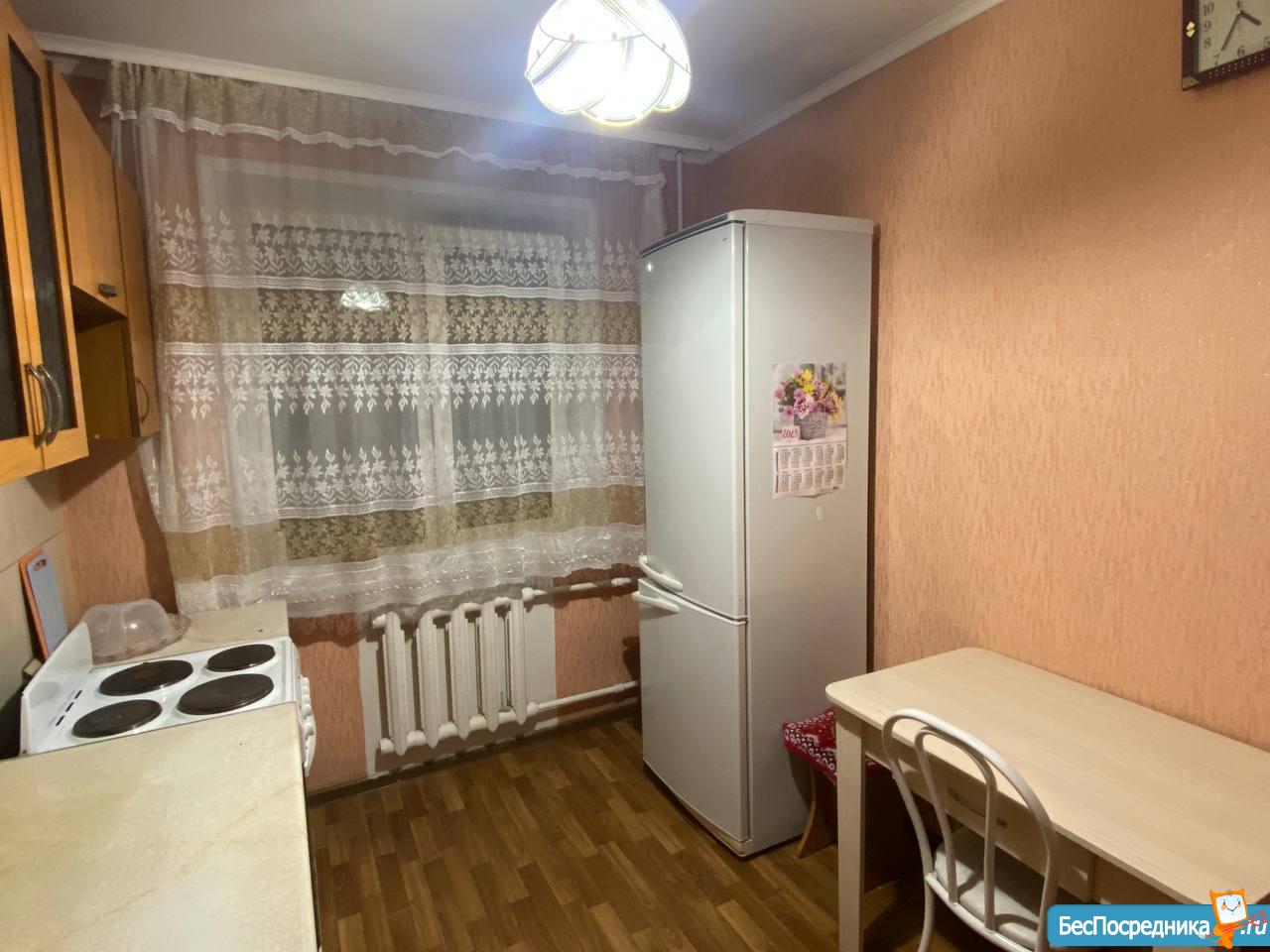 Сдам однокомнатную квартиру, есть электроплита, холодильник, двухспальная кровать, небольшой диван. Оплата 10000р + свет.