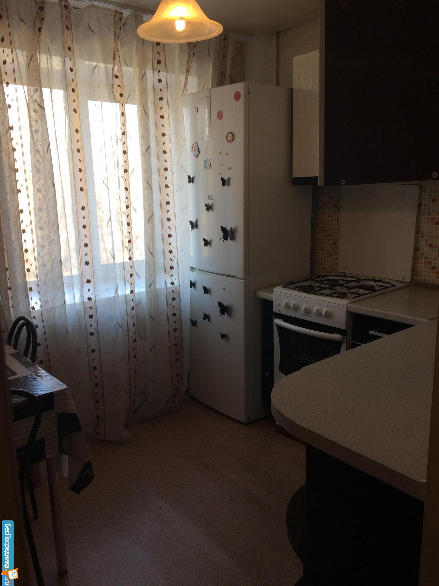 Состояние хорошее. Квартира светлая, теплая. Окна вызодят во двор. Удобная транспоитная развязка. В квартире есть холодильник, стир. машина, кровать, диван, кухонный гарнитур, столы, водонагреватель, телевизор.