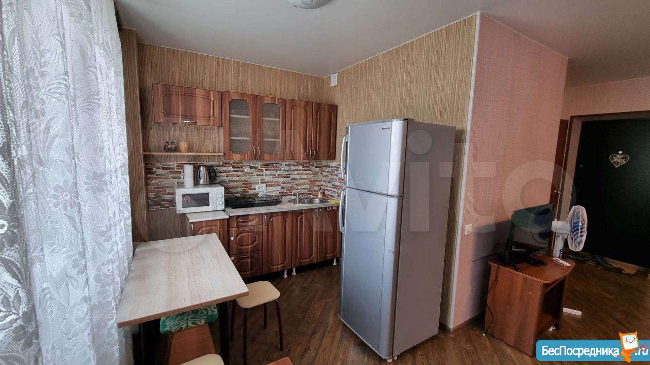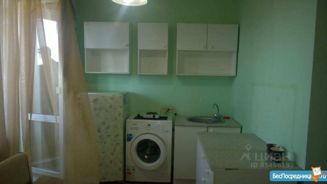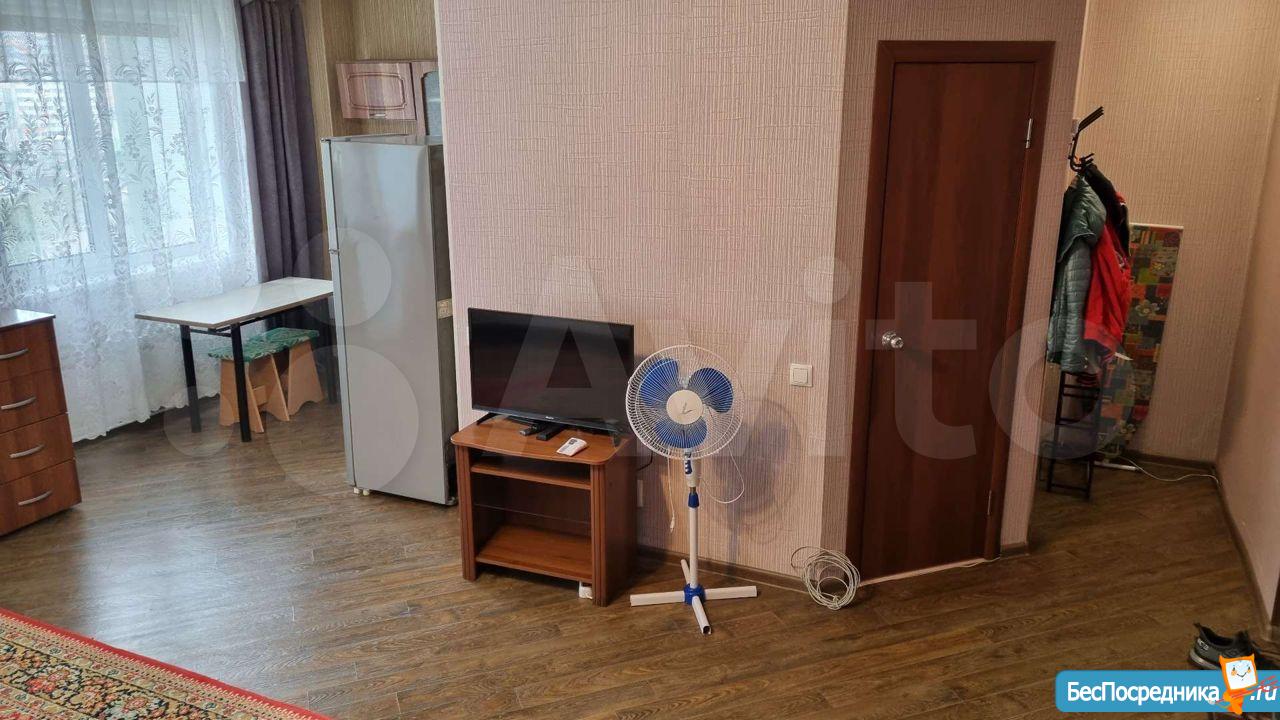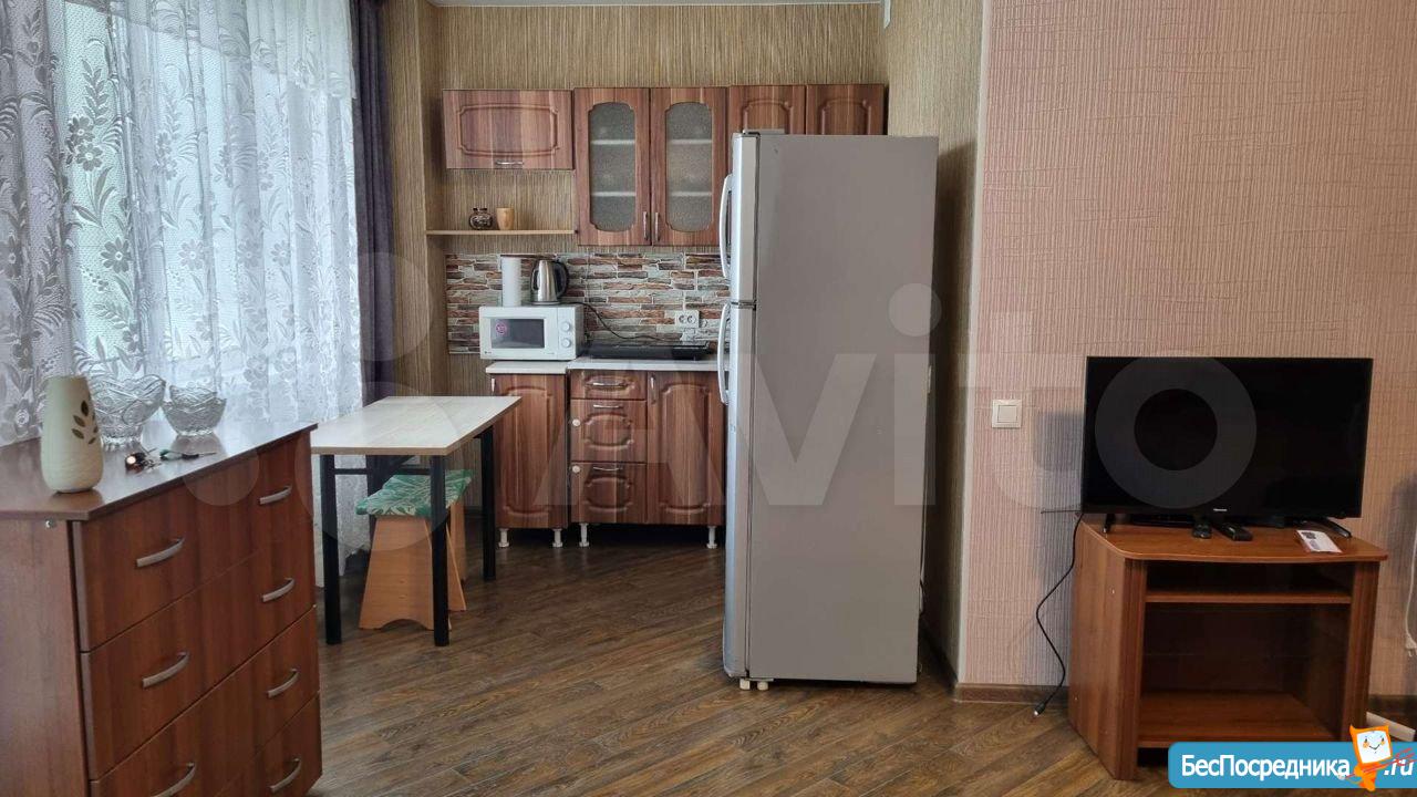 Уютная и светлая студия. Тихие соседи. Есть стенка, телевизор, холодильник, плита, стиральная машина и все необходимое для жизни. Возможность подключения интернет и тв всех провайдеров. Во дворе "Лента". Шикарный вид из окна. 10000+ квитанция